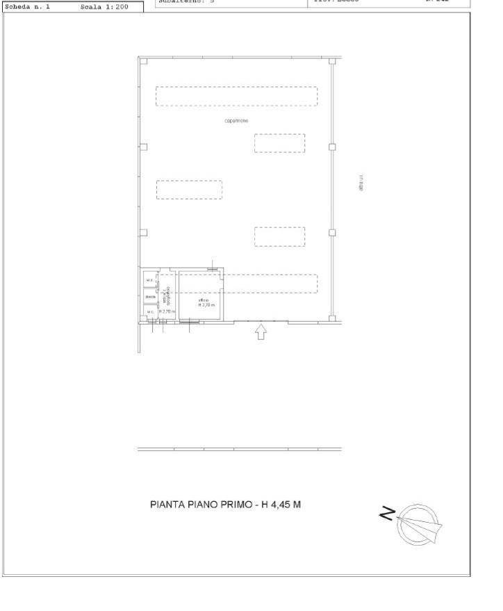 L'immobile presenta un'altezza di circa 4.5 mt e dispone inoltre di circa 50 mq di uffici, servizi e spogliatoi.