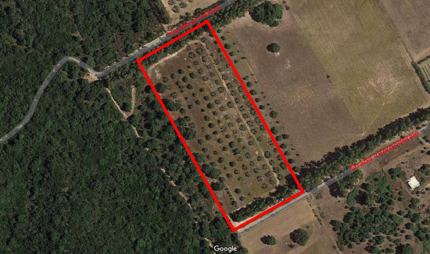 • due frangivento di eucalipto posti lungo i confini: a nord su via Minni Minni e a sud lungo la strada interpoderale.