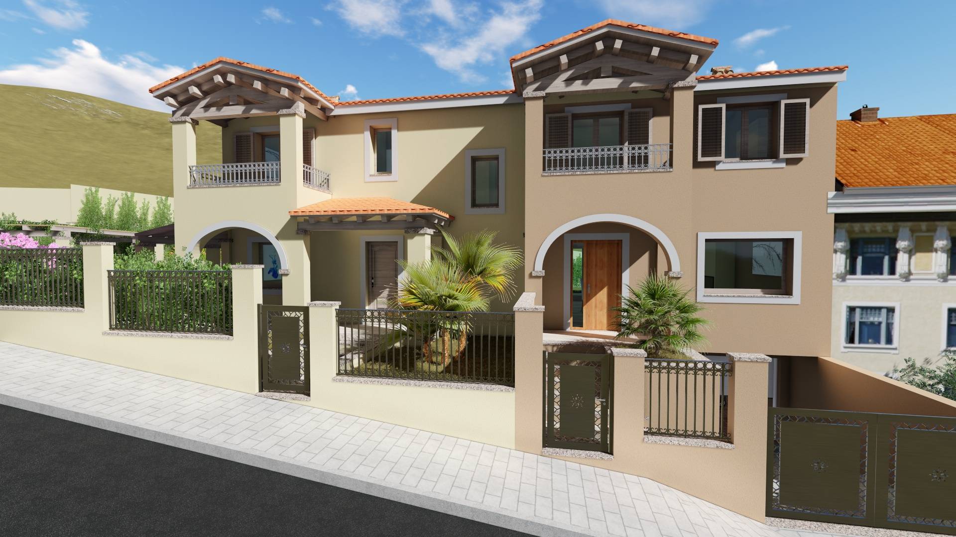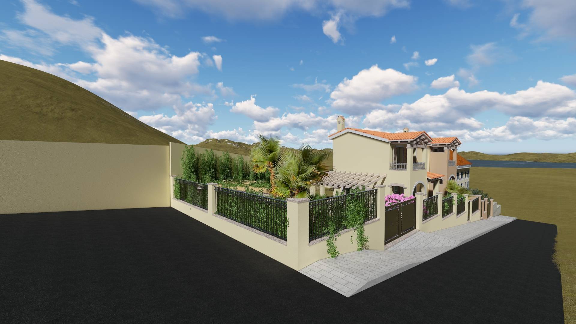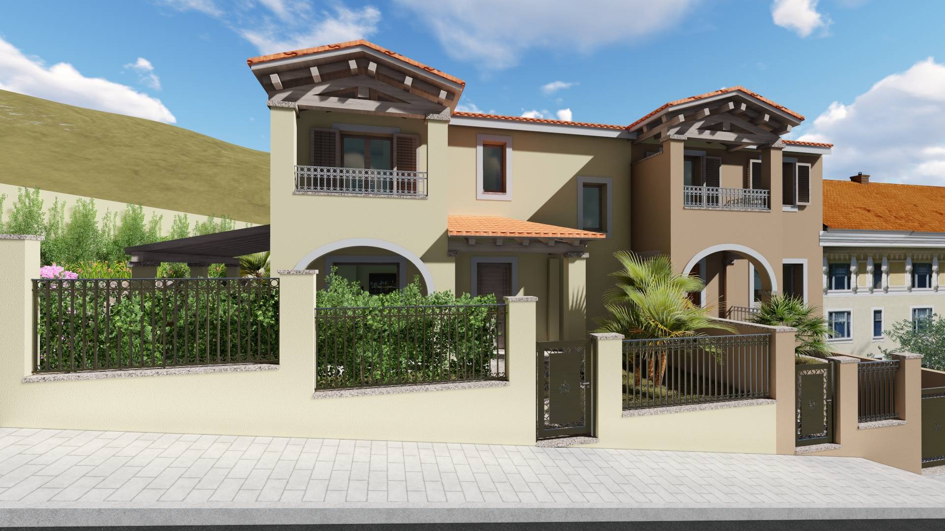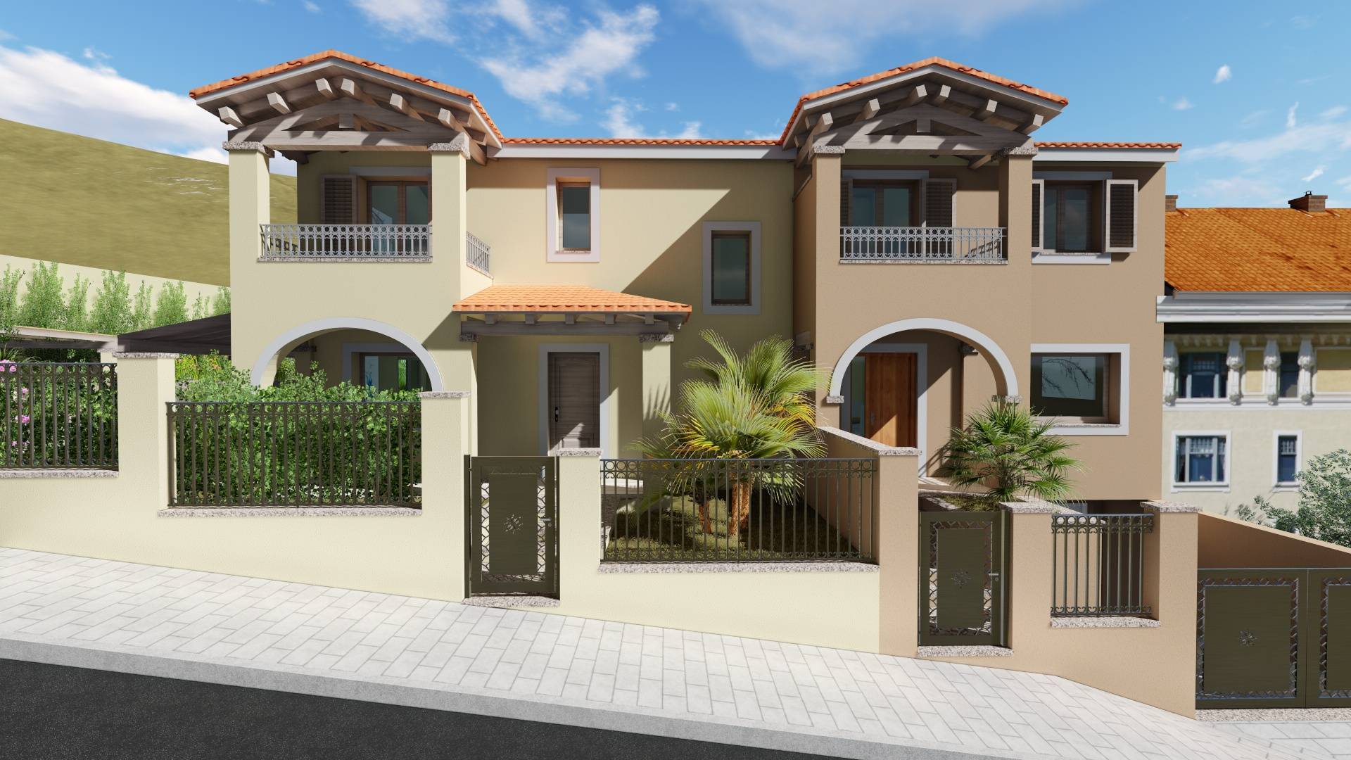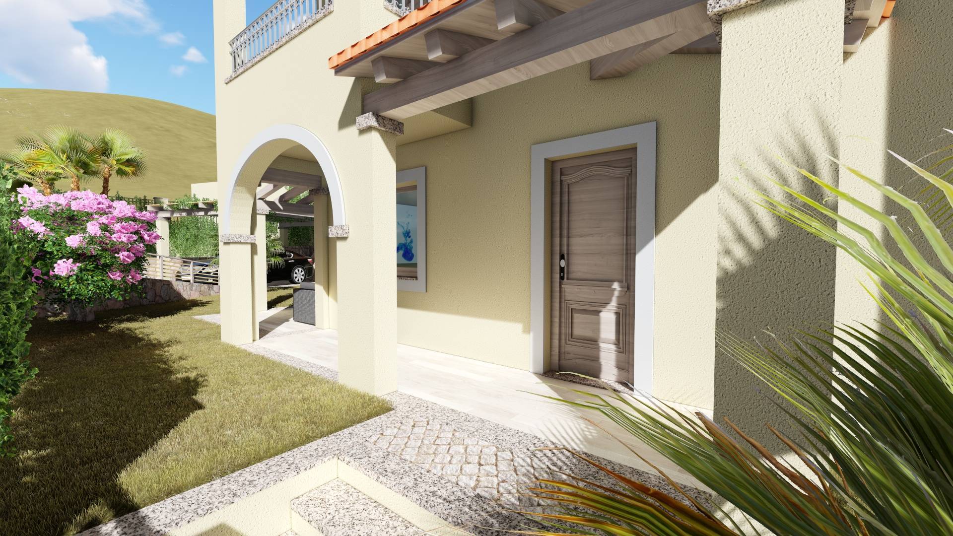 La villetta è circondata su tre lati da un giardino di 215 mq dove sarà presente un posto auto coperto.