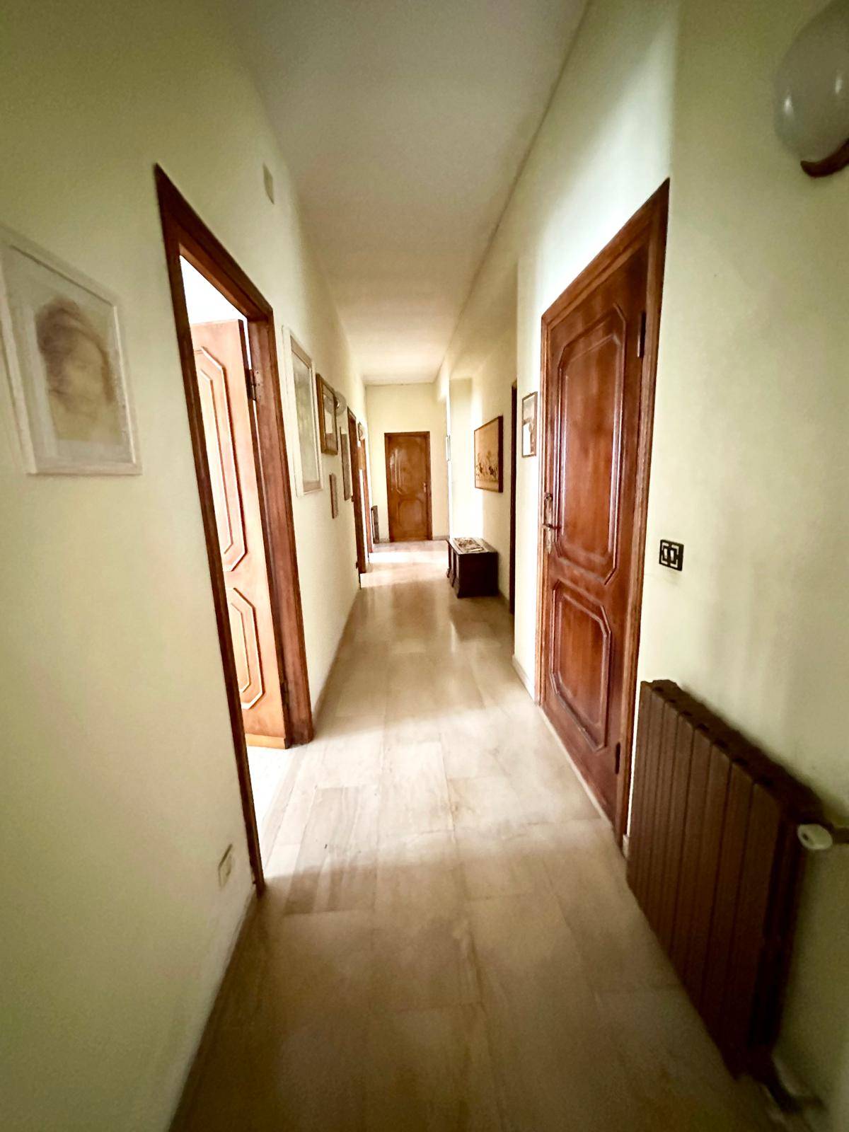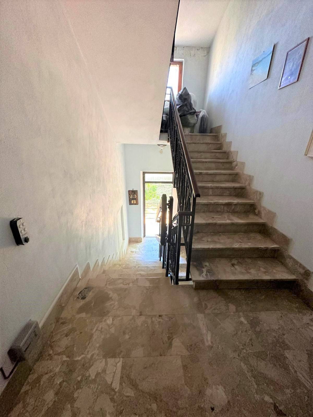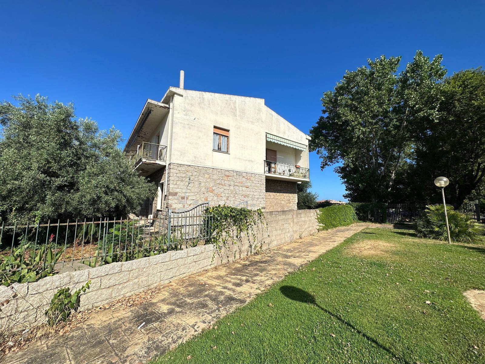 La casa è composta da un piano seminterrato, adibito a cantina ; un piano terra adibito a garage, ufficio, bagno e altra cantina ; piano primo adibito ad abitazione principale composta da cucinotto con dispensa, sala da pranzo, ampio soggiorno, tre camere da letto, studio, due bagni, balcone che si affaccia sulla via principale e sul lato standard comunale. Infine vi è il sotto tetto pari a ulteriori 200 mq circa, che potrebbe diventare una terrazza con vista mare. La casa è dotata di impianto di riscaldamento tradizionale con caldaia a gasolio. Il giardino risulta essere area edificabile, perciò vi è un potenziale edificatorio non indifferente. La casa può essere adibita anche a piccolo hotel con la realizzazione di una piscina e sistemazione dell'area giardino. Valledoria è un comune del Nord Sardegna, vicino al mare, infatti dista solo 800 metri dalla spiaggia di S. Pietro , dotata di tutti i servizi quali ristorazione, sdraio, ombrelloni ecc. ecc. Valledoria dista solo un ora dagli aeroporti di Alghero e Olbia, 30 minuti dal porto navale di Porto Torres.