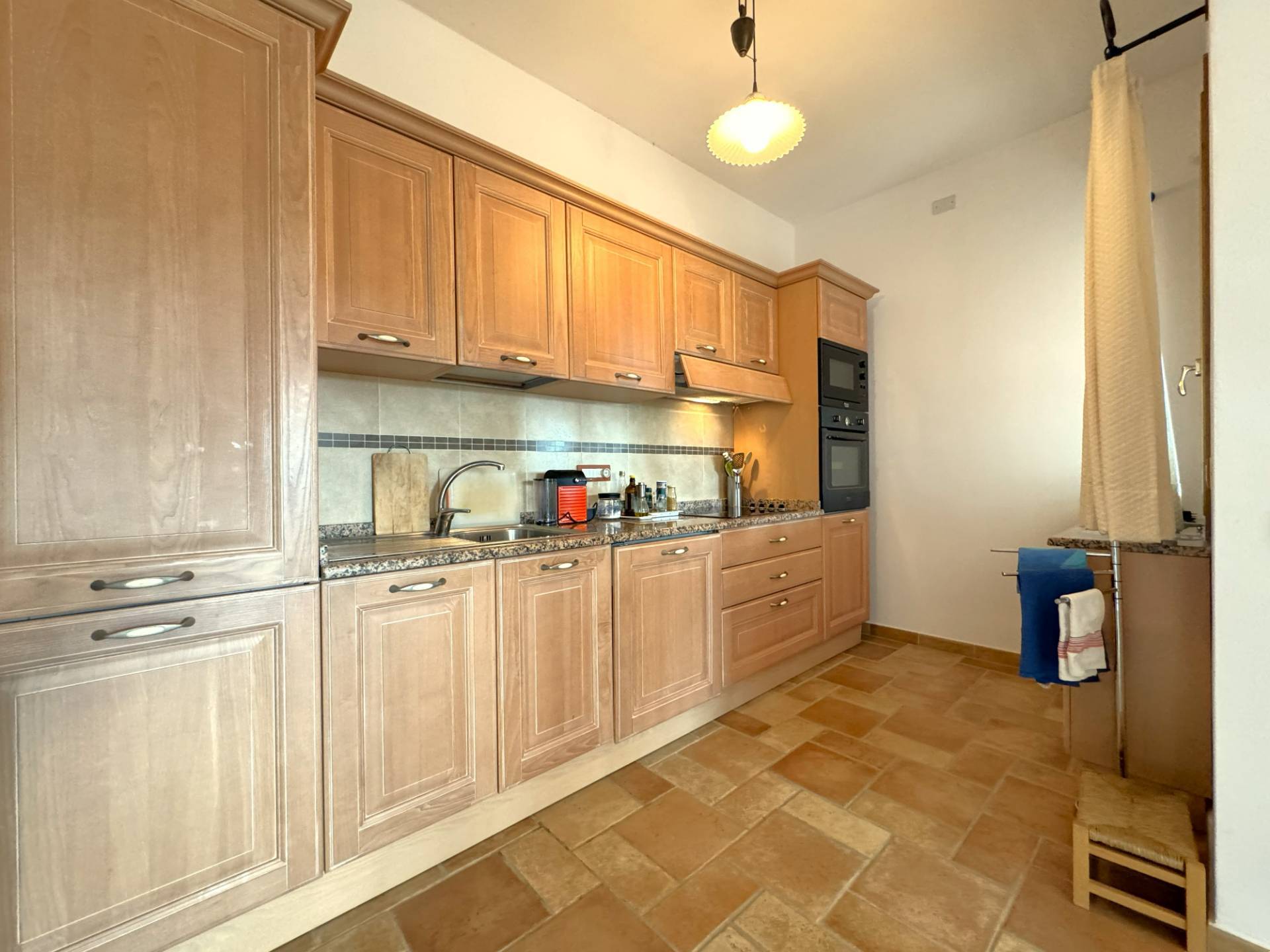 Gli spazi interni, luminosi e ariosi, comprendono una vasta zona living con accesso diretto alla terrazza al piano primo, una cucina moderna attrezzata con elettrodomestici di ultima generazione, tre camere da letto di cui una con bagno padronale con vasca e, secondo bagno con doccia.