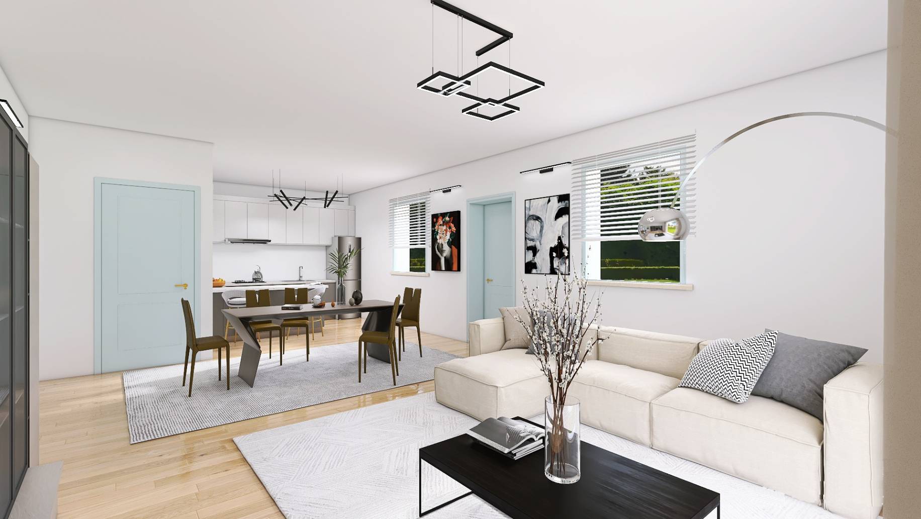 L'abitazione è posta al piano primo di una palazzina di nuova costruzione, libera su tre lati e composta al piano terra da giardino privato, tramite scala privata si accede all'appartamento con ampia e luminosa zona giorno open space, terrazzo vivibile, disimpegno notte, due spaziose camere da letto e doppi servizi.