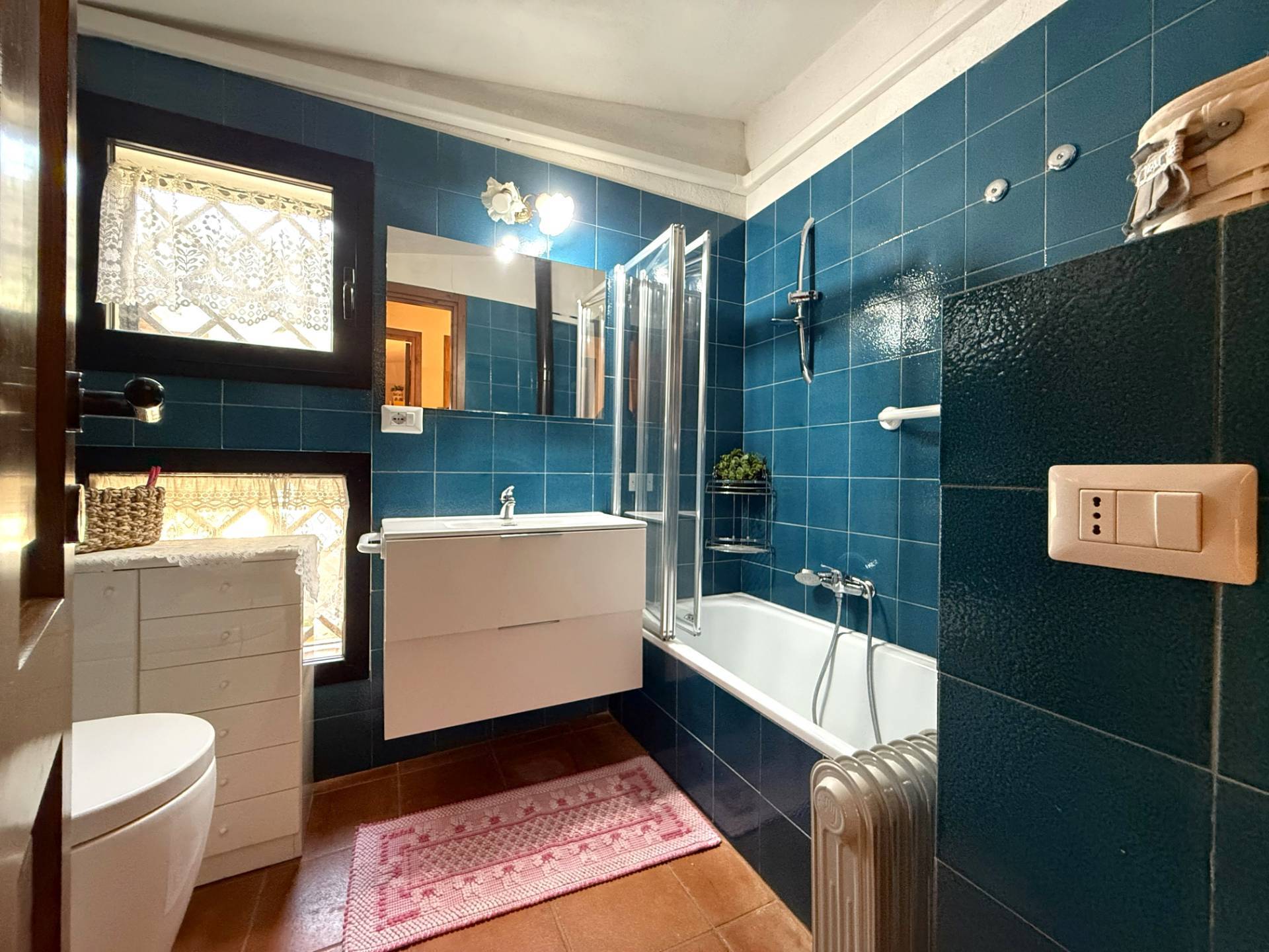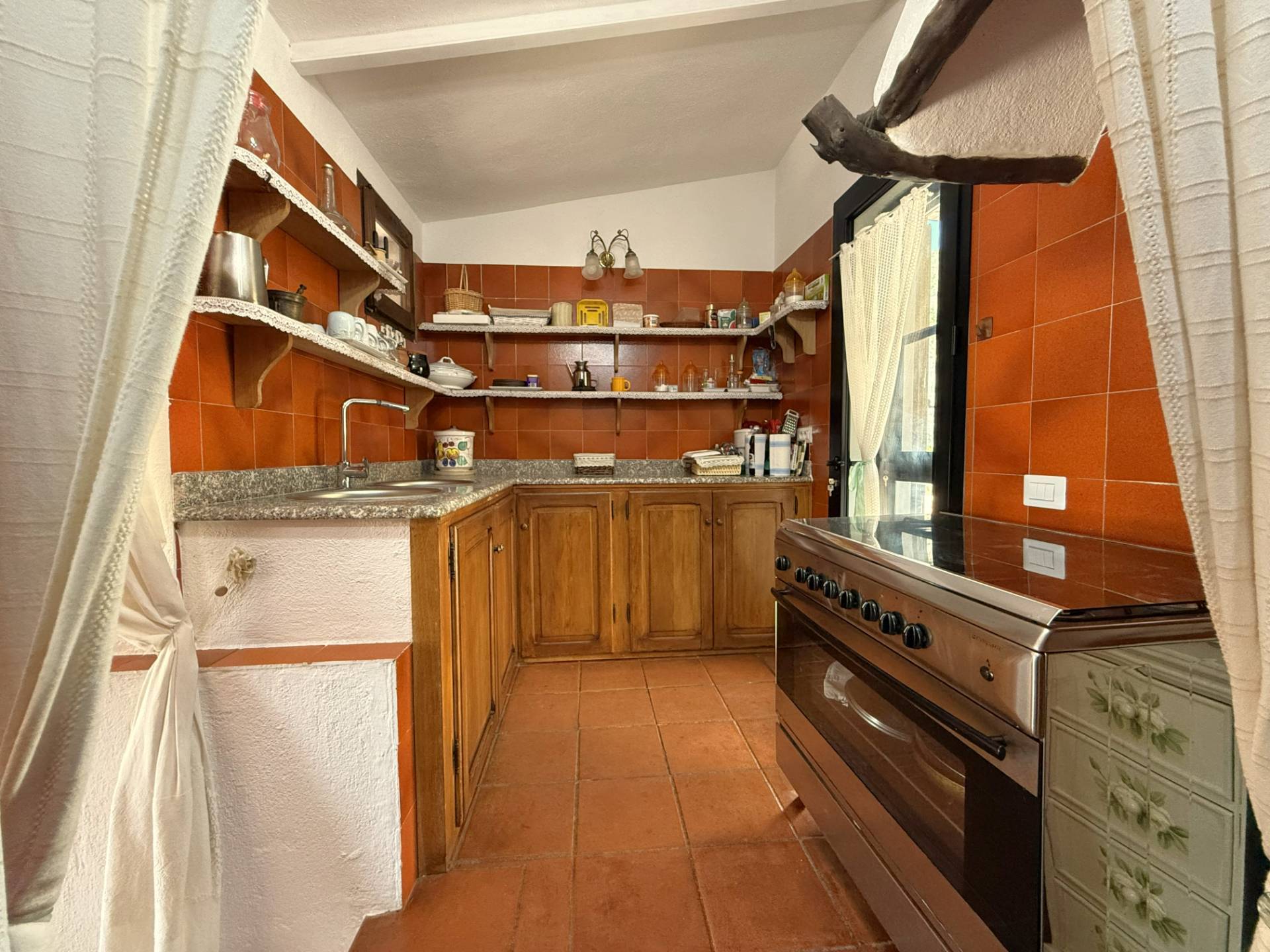 Una meravigliosa veranda d'ingresso ci accoglie all'interno dell'abitazione dove trova spazio un ampio soggiorno e cucinotto separato con dispensa nella zona giorno.