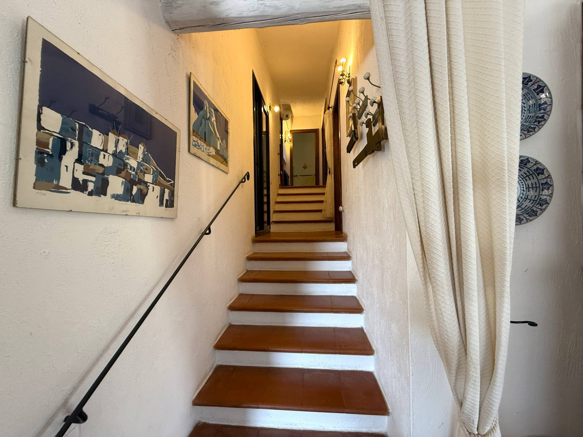 Al piano superiore trovano spazio tre camere da letto (di cui due matrimoniali e una singola) e due bagni.