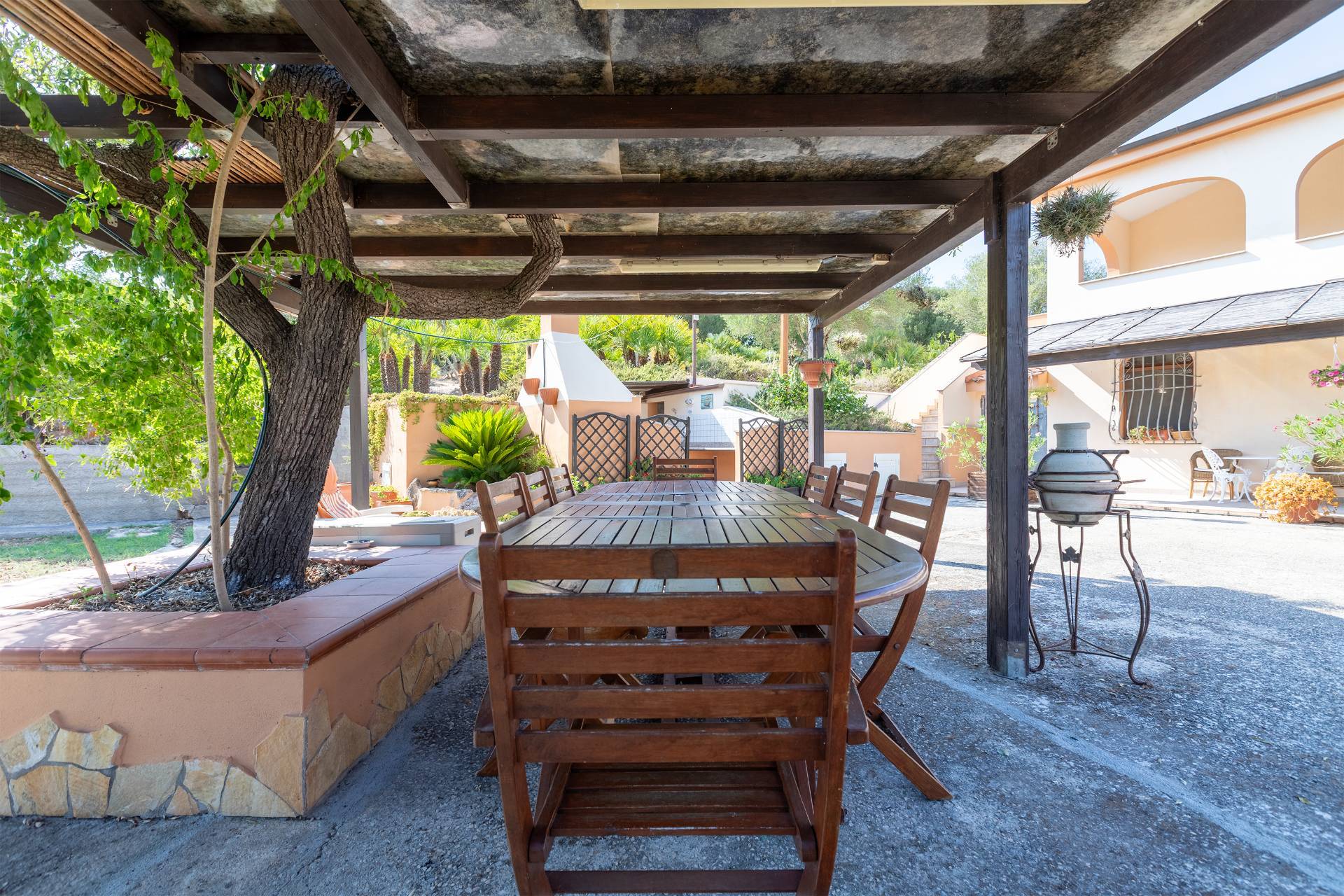 Gli spazi esterni comprendono un piazzale di oltre 200 mq, gazebo, due barbecue e un forno a legna, perfetti per momenti conviviali o per ospitare eventi. La proprietà dispone inoltre di un pozzo e 2 cisterne per un totale di 40.000 litri, collegate a un circuito perimetrale con 15 punti di erogazione, utile sia per l'irrigazione sia per la sicurezza antincendio.
