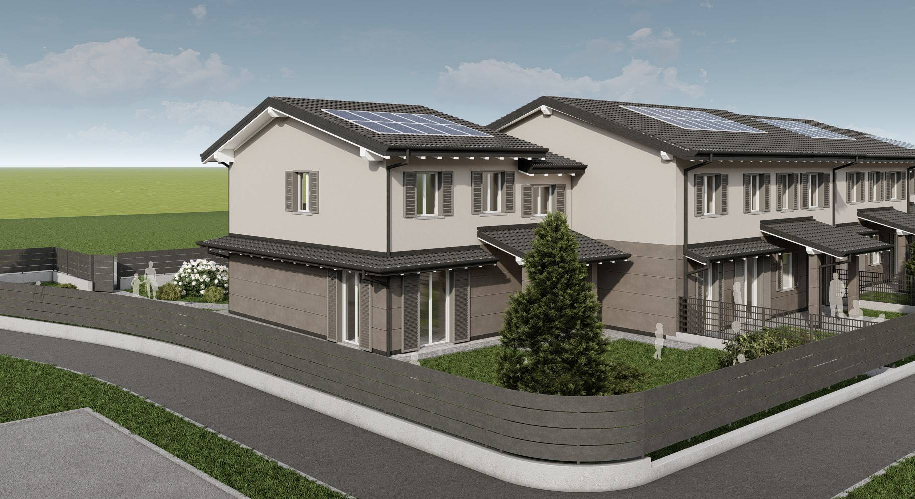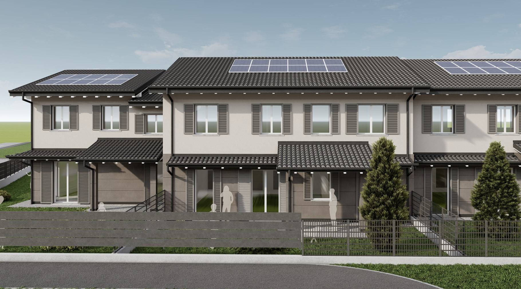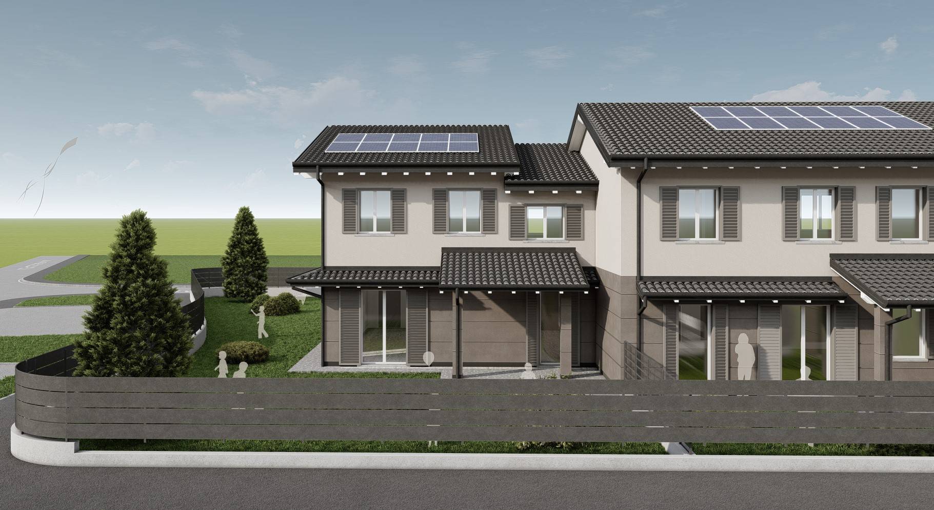 NUOVA VILLA A SCHIERA DI TESTA di ampie metrature disposta su due livelli, con GIARDINO PRIVATO libera su tre lati !!! Composta da ingresso direttamente sul giardino di 400 mq libero su tre lati con ampio porticato vivibile, luminosa zona giorno open-space con cucina a vista e primo bagno di servizio con disimpegno e accesso diretto dall'autorimessa. Al piano superiore quattro camere da letto di cui una matrimoniale, ripostiglio e secondo bagno con vasca. A completare l'immobile un'autorimessa e due posti auto inclusi nel prezzo!!!