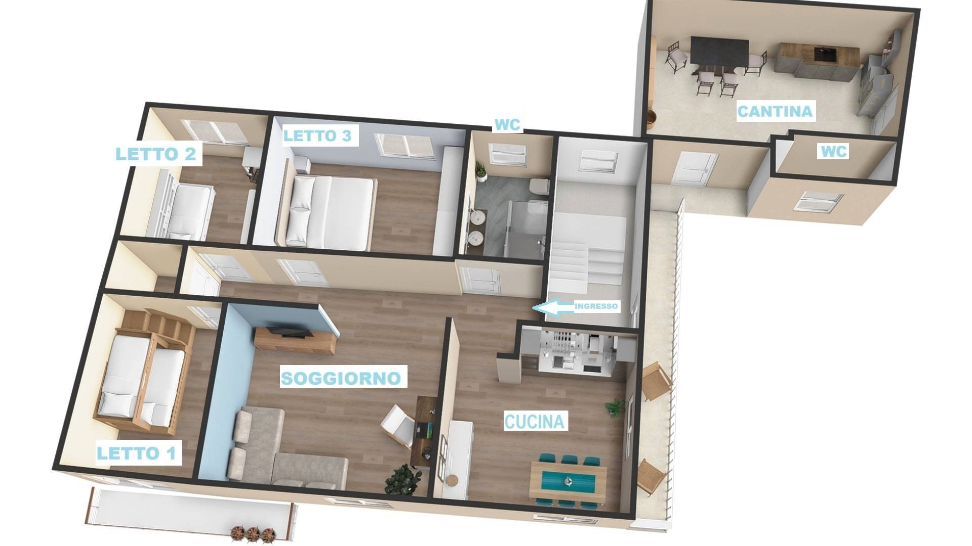 Un dettaglio rilevante è il doppio accesso: l'immobile è raggiungibile sia dal vano scala condominiale coperto, sia direttamente dal vano cantina, garantendo massima praticità per il carico/scarico o per l'utilizzo dei locali accessori.
