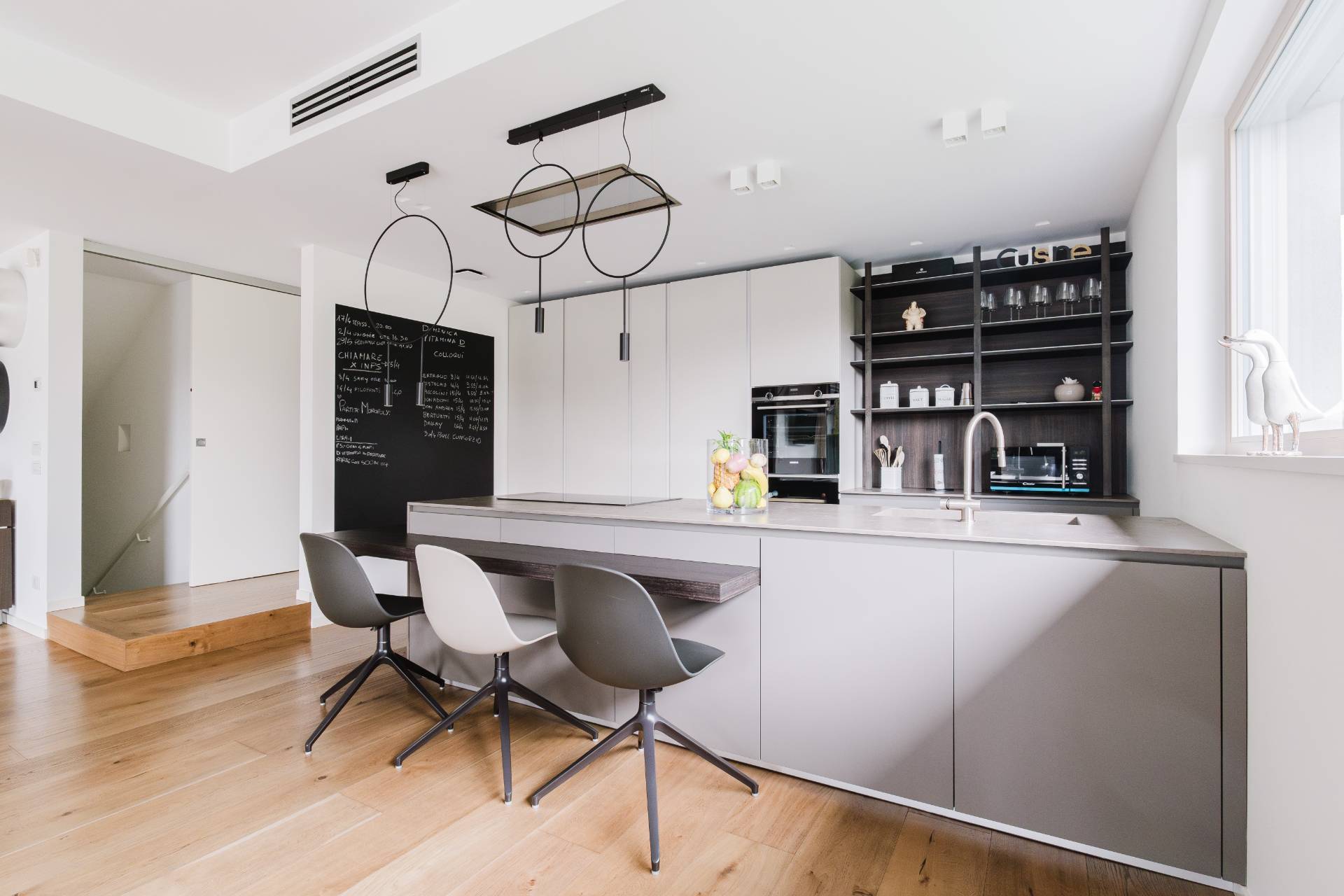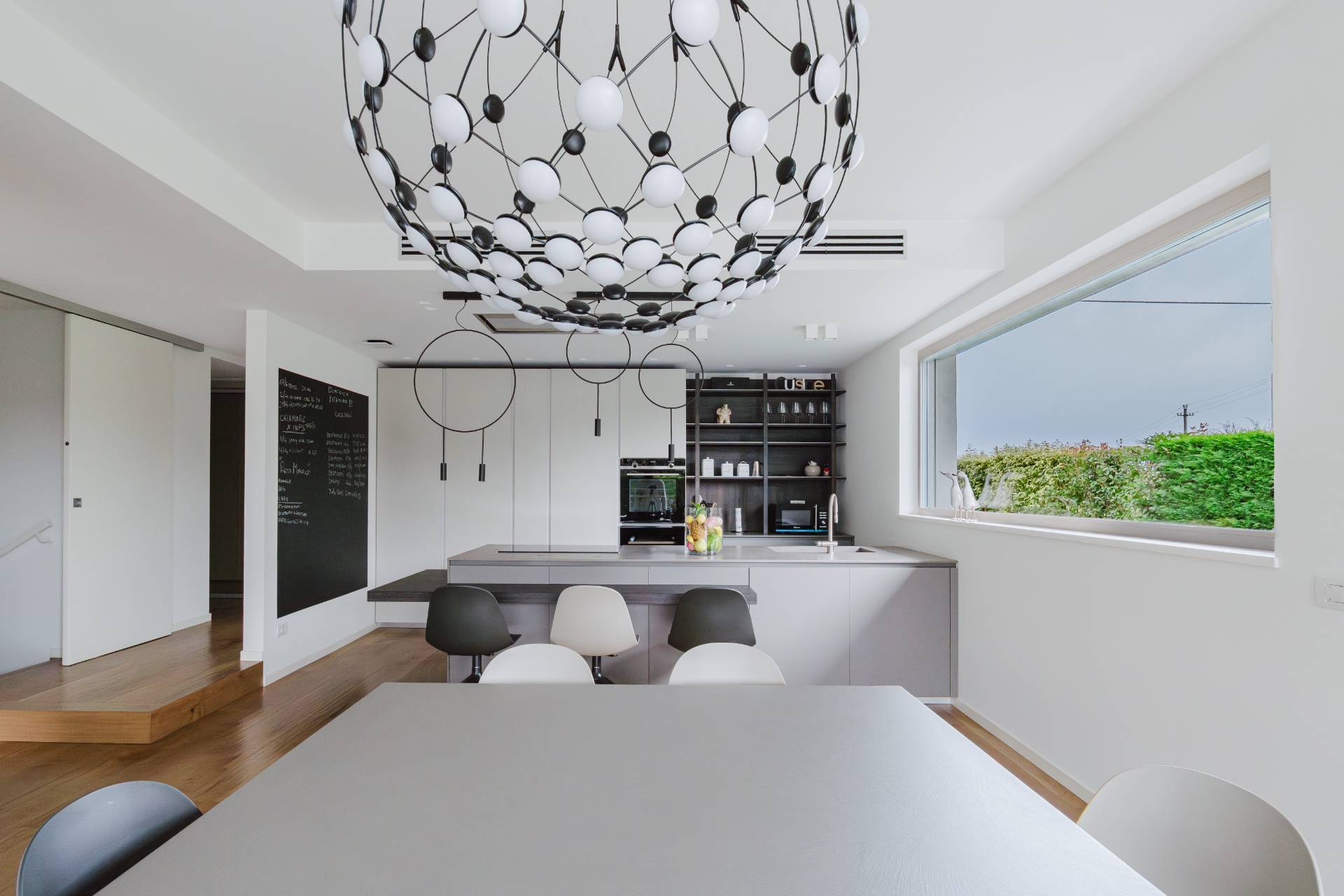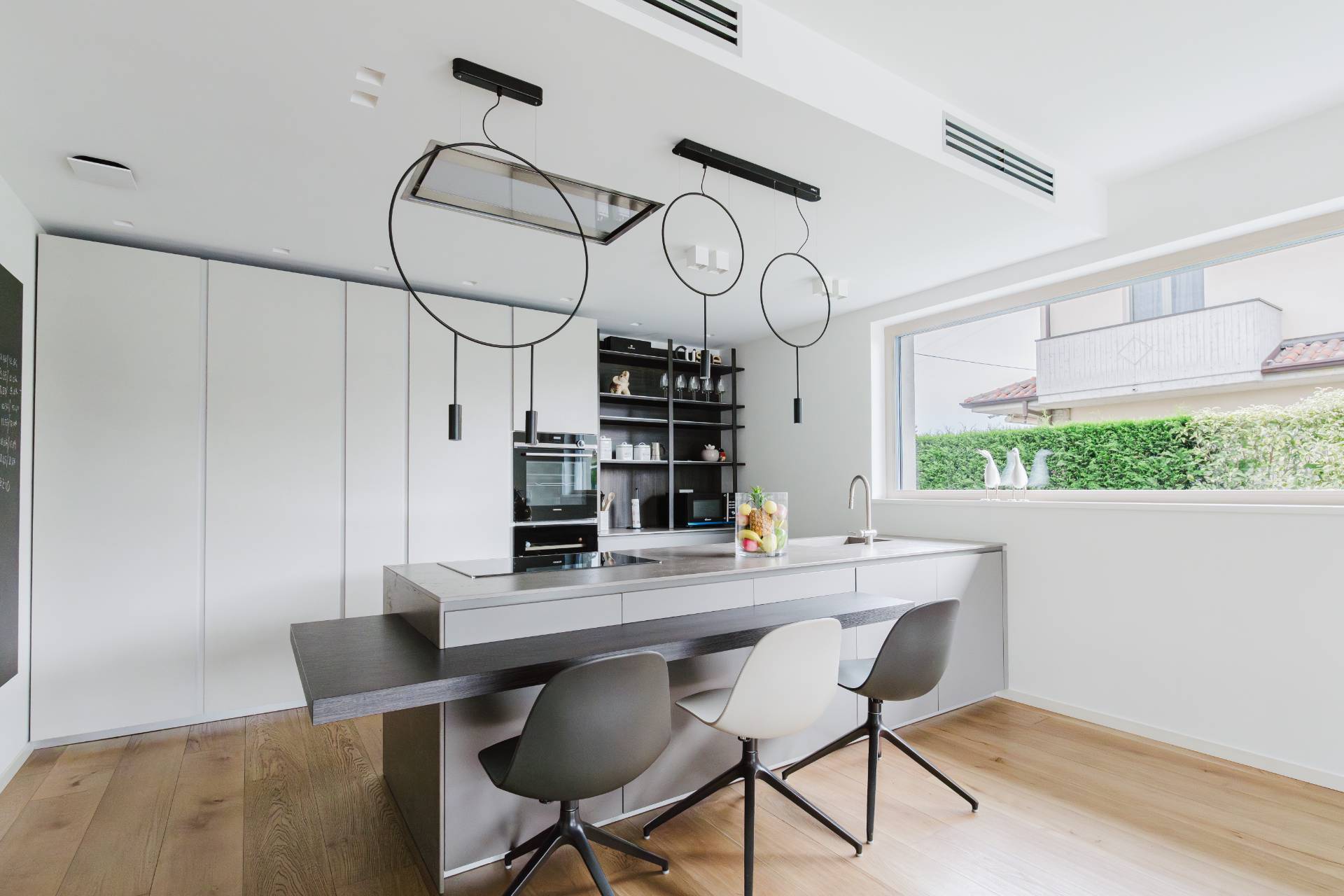 Al piano interrato si trovano invece il locale tecnico, un'ampia lavanderia e il box, di oltre 50mq, con impianto di ricarica per le auto elettriche e doppia basculante motorizzata.