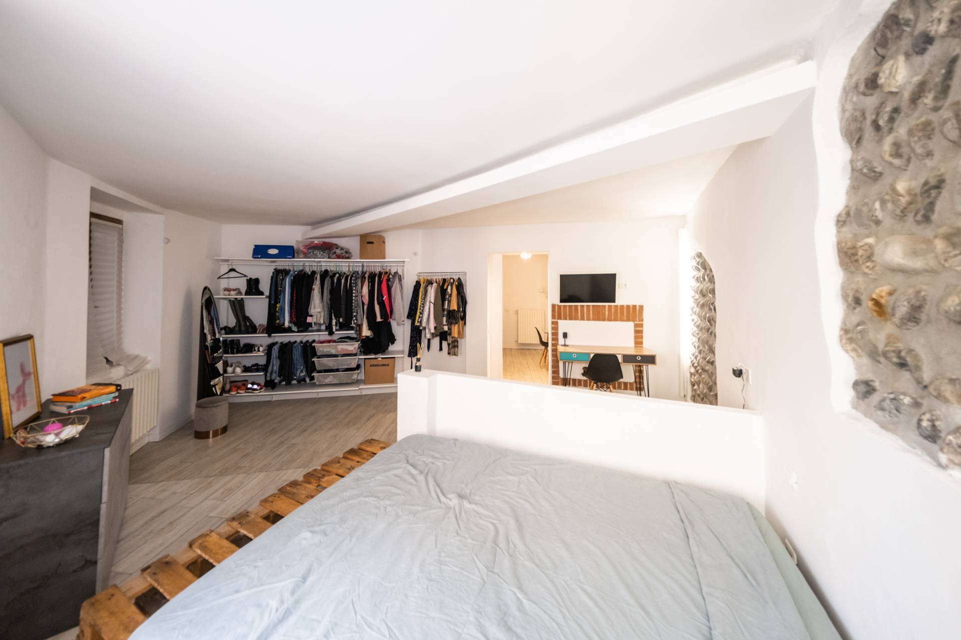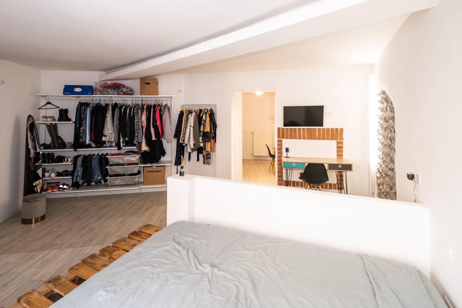 L'immobile viene venduto arredato, si trova in casa di corte, al secondo piano, composto da ingresso, zona giorno con cucina a vista, zona living, grande camera da letto con parete attrezzata a cabina armadio e bagno con doccia.