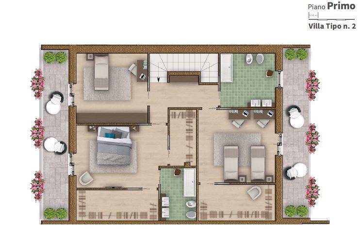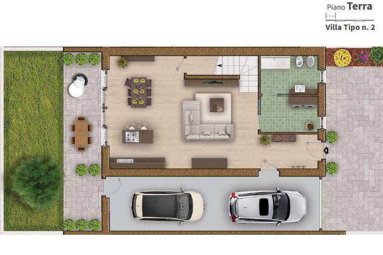 Ingresso pedonale e carrrale indipendenti, con ampio giardino per circa 240 mq. Accesso all'immobile da porta blindata su ampio soggiorno con cucina open space per complessivi 46 mq calpestabili; tripla esposizione e libera su tre lati. Il soggiorno ha ampia vetrata che da accesso ad un piacevole portico esterno, per cene o pranzi all'aperto; sempre al piano terra antibagno e bagno ospiti con doccia. Dal piano terra si accede al piano primo; da disimpegno si aprono due camere da letto singole, tutte con cabina armadio e un bagno con vasca; una terza camera matrimoniale con cabina armadio e un bagno esclusivo con doccia. Dalle camere si ha accesso a due ampi balconi di circa 13 mq l'uno.