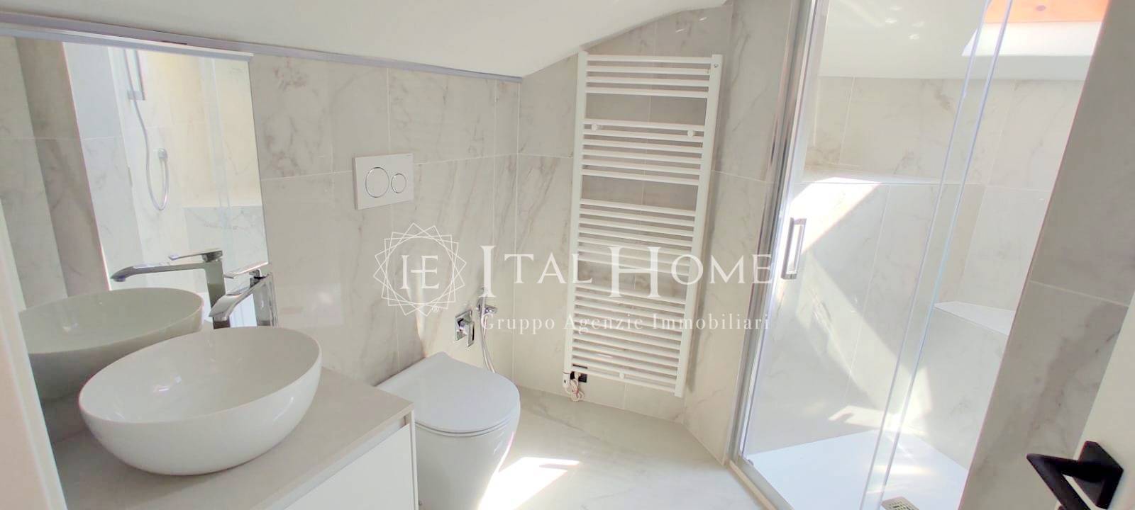 Incluso nel canone, arredo nuovo, della cucina con elettrodomestici e dei 2 bagni con finiture di pregio, in marmo.