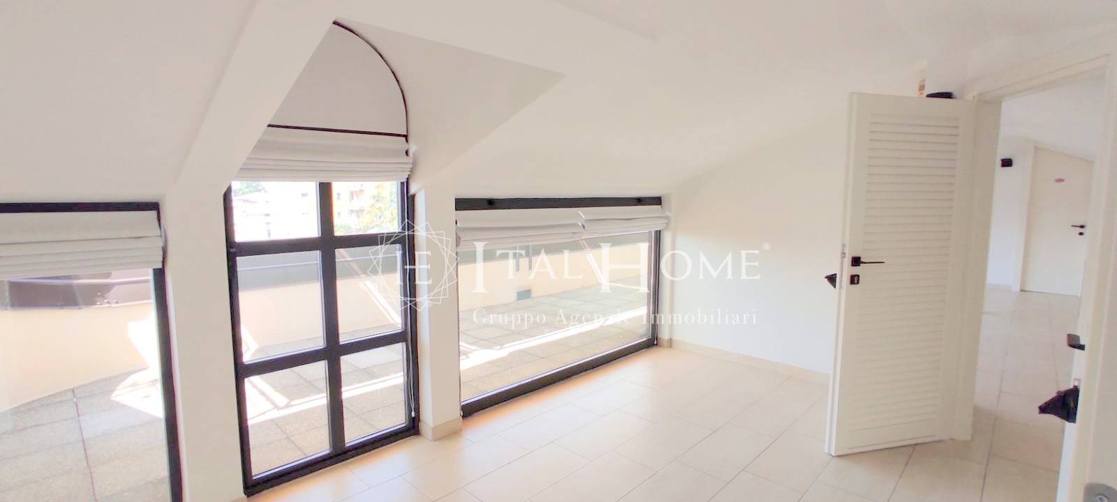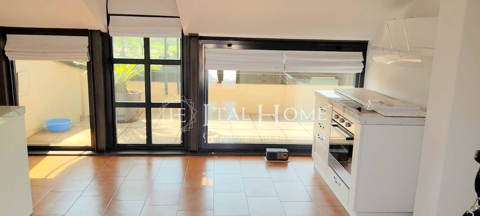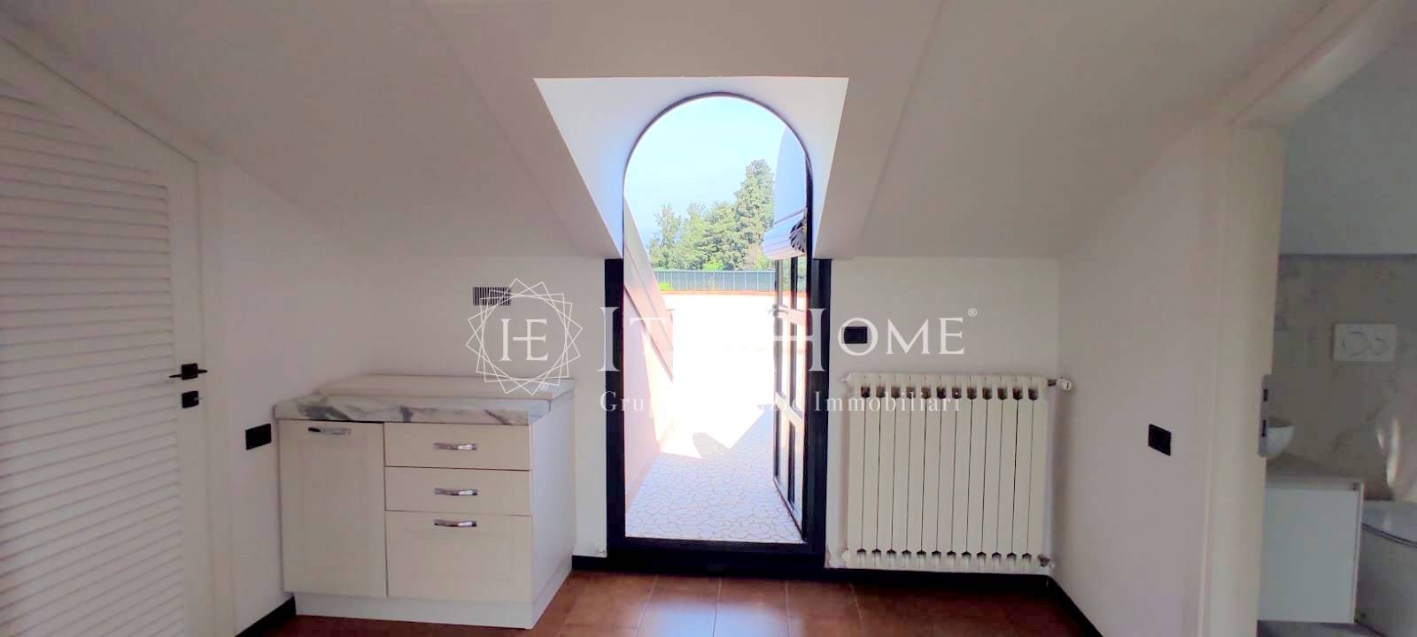 Ingresso, luminosissima zona giorno con vetrate ed affaccio sul meraviglioso terrazzo solarium, cucina abitabile separata già arredata su misura, bagno finestrato, camera da letto king size (divisibile in 2), cabina armadio ed ulteriore bagno finestrato.