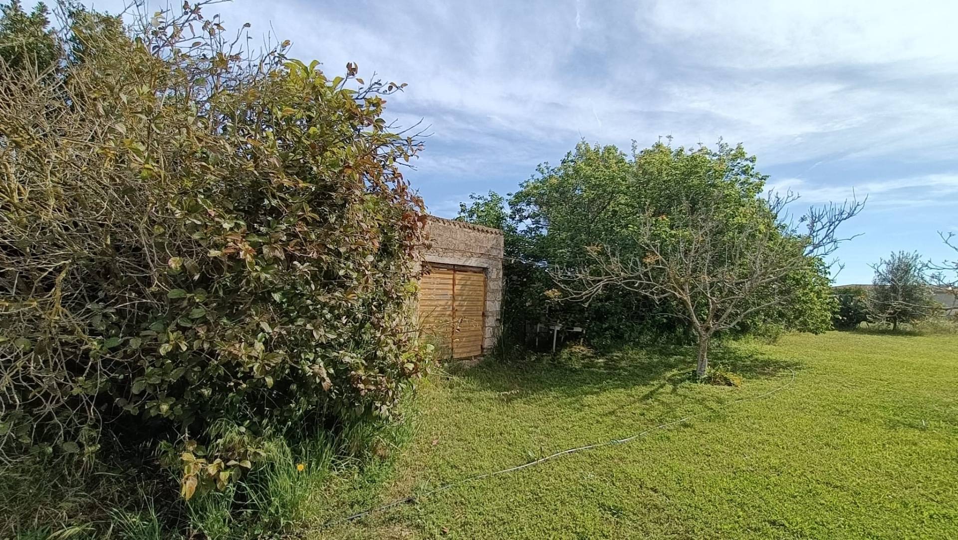 Attualmente sul terreno è presente una struttura di circa 60 mq, accatastata come annesso colonico. Questa costruzione può essere utilizzata come base per un progetto di ristrutturazione oppure demolita per fare spazio a nuove realizzazioni, a seconda delle esigenze e dei progetti futuri del proprietario. Il terreno è completamente RECINTATO e dispone di un pozzo funzionante, elemento fondamentale per l'approvvigionamento idrico in ambito agricolo. Inoltre, è presente anche l'allaccio all'acqua del consorzio di bonifica della Nurra, ulteriore vantaggio per un utilizzo intensivo del terreno.