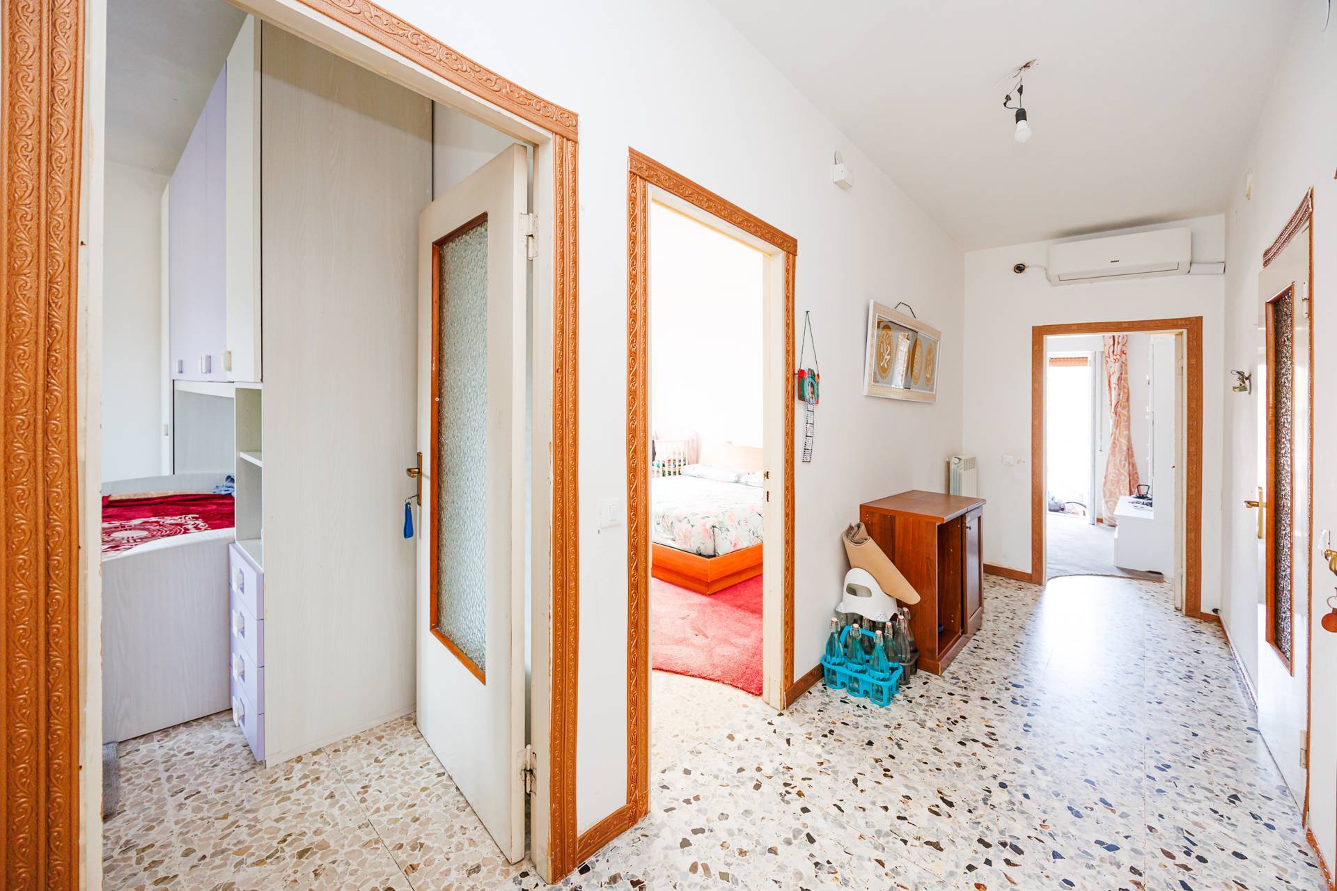 L'appartamento è internamente in buone condizioni, infissi in PVC vetro doppio e impianto di climatizzazione con split messi recentemente.
