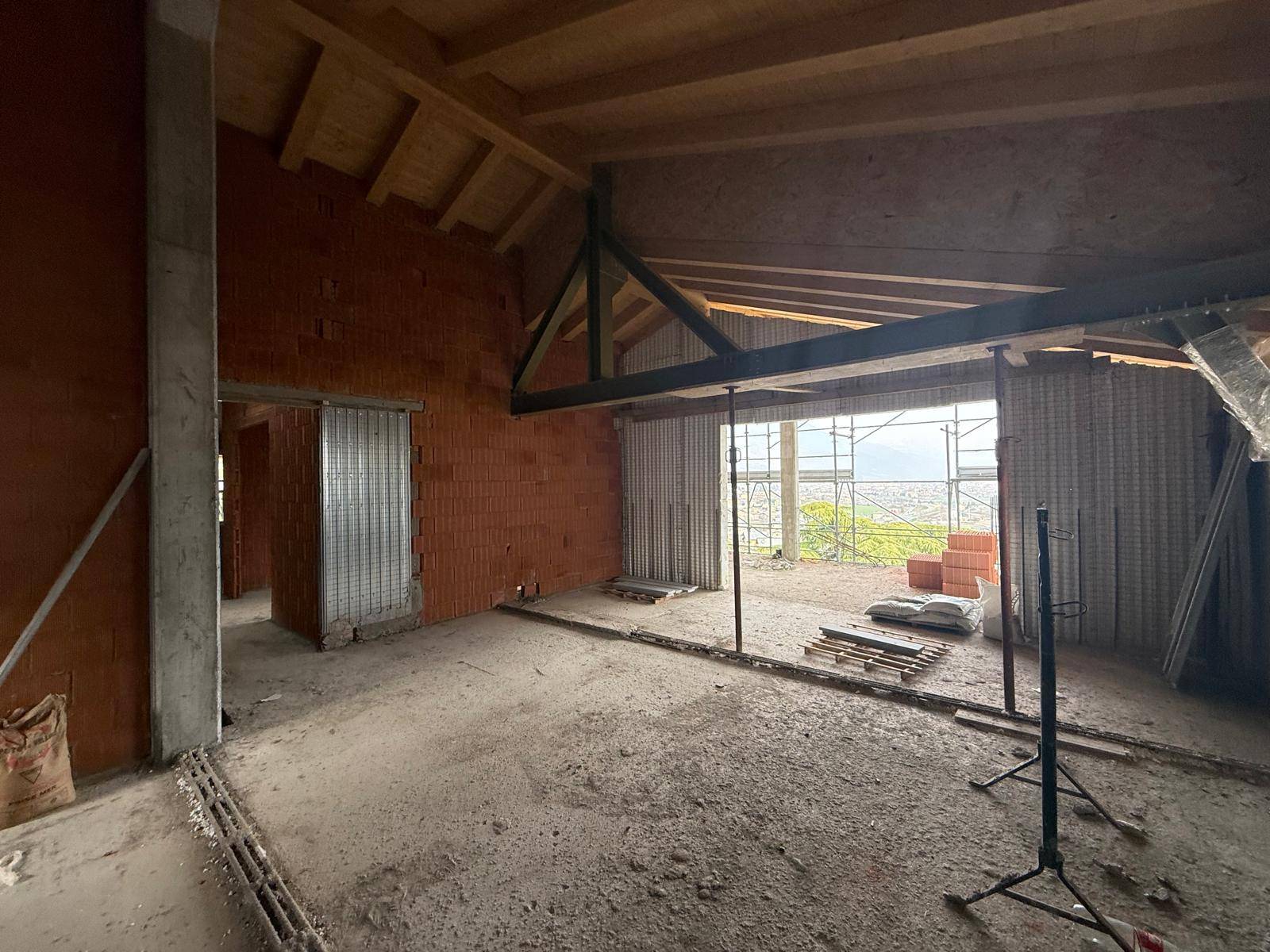 Bellissimo attico panoramico di nuova costruzione, in classe A4 con pannelli fotovoltaici e riscaldamento a pavimento e pompa di calore; è composto da soggiorno open space con angolo cottura, tre camere da letto, due bagni e un'ampia terrazza di 43 mq esposta completamente a Sud con vista sulle montagne.