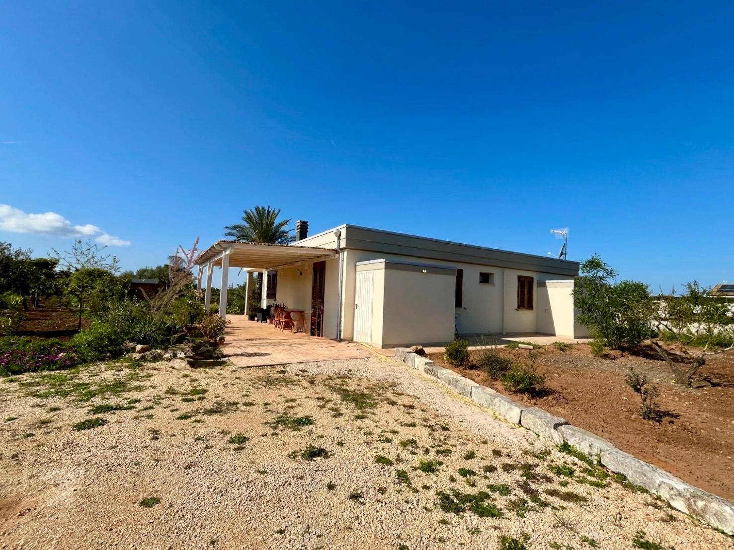 Dotata di tutti i comfort moderni: impianto Fotovoltaico con Batterie d'Accumulo, Riscaldamento a Pavimento, Pompa di Calore, Scaldabagno, Impianto di Depurazione, Pozzo con Autoclave e Serbatoio d'Accumulo. Accesso indipendente con Cancello Automatico, grande Piazzale per il Parcheggio e un Terreno di circa 4500 mq piantumato con Frutteto, Uliveto, Giardino e Orto, tutti curatissimi. PRONTA DA ABITARE