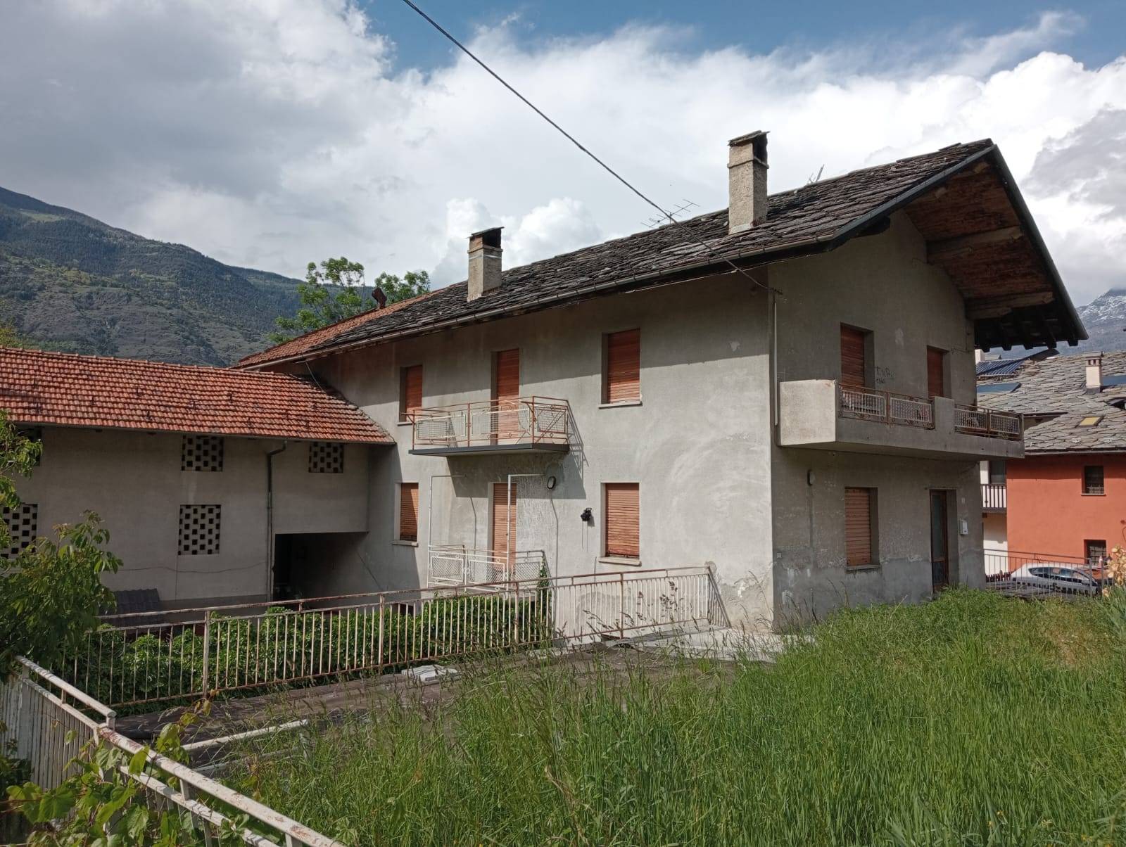 Casa semi-indipendente in una zona tranquilla di Gressan, disposta su due livelli, composta da una zona giorno, una camera, un bagno e uno sgabuzzino al piano terra; al primo piano due camere, cucina, soggiorno, un bagno e un balcone.