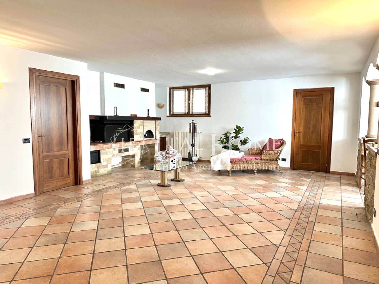 Piano seminterrato: Taverna a giorno completamente rifinita in ogni dettaglio e studiata da noto architetto, cucina in muratura, camino funzionante a legno, stufa di design, forno per pizza, e grande soggiorno, ideale per pranzi, cene conviviali e famiglie numerose, bagno, lavanderia/stireria, locale tecnico/impianti, ed intercapedine che circonda tutta la villa.