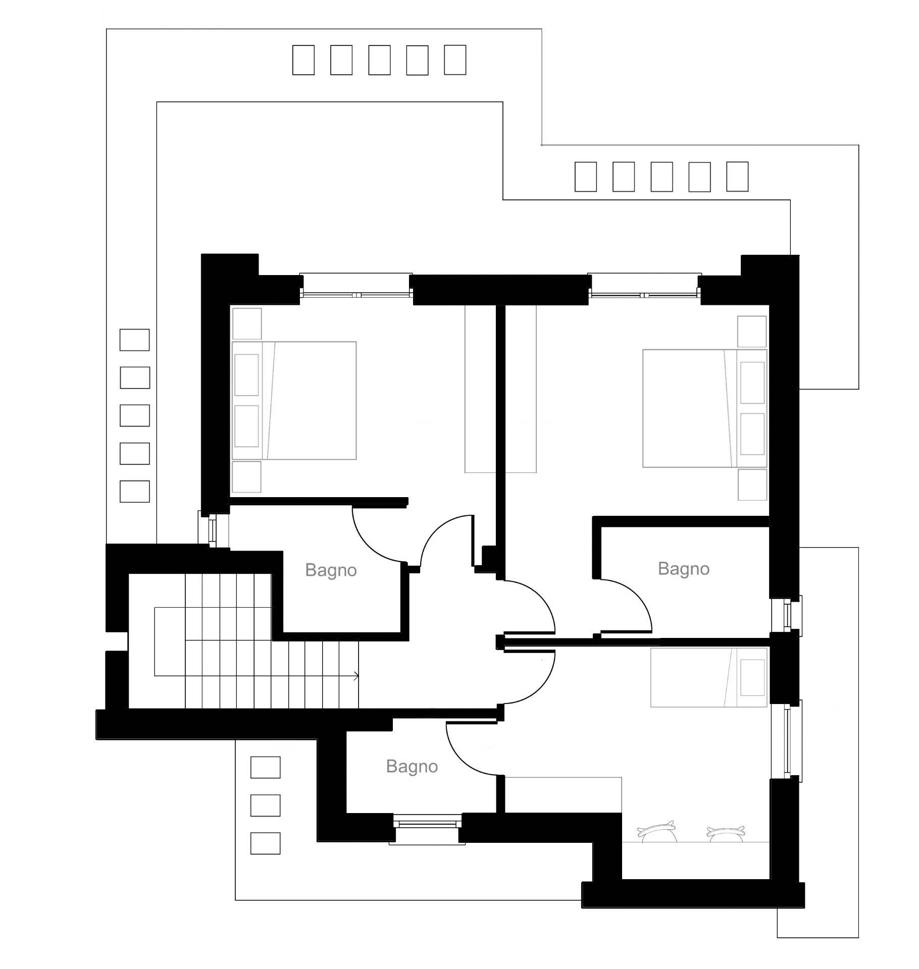 Al primo piano troviamo tre accoglienti camere matrimoniali, tutte dotate di esclusivo bagno en suite ed impreziosite da soffitti con affascinanti travi a vista in legno naturale;