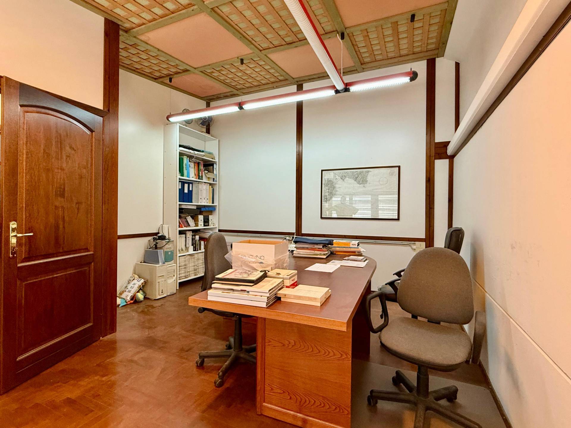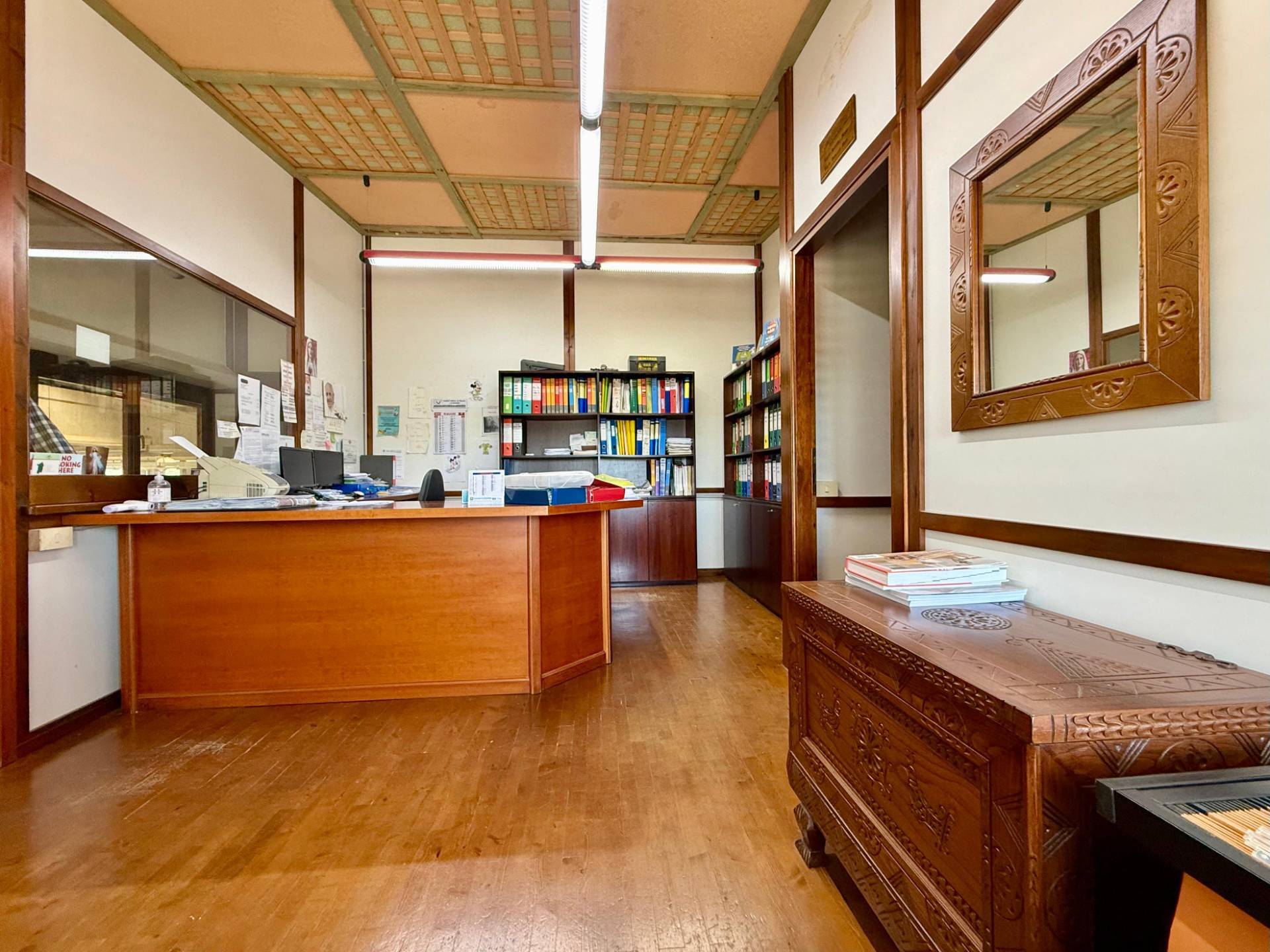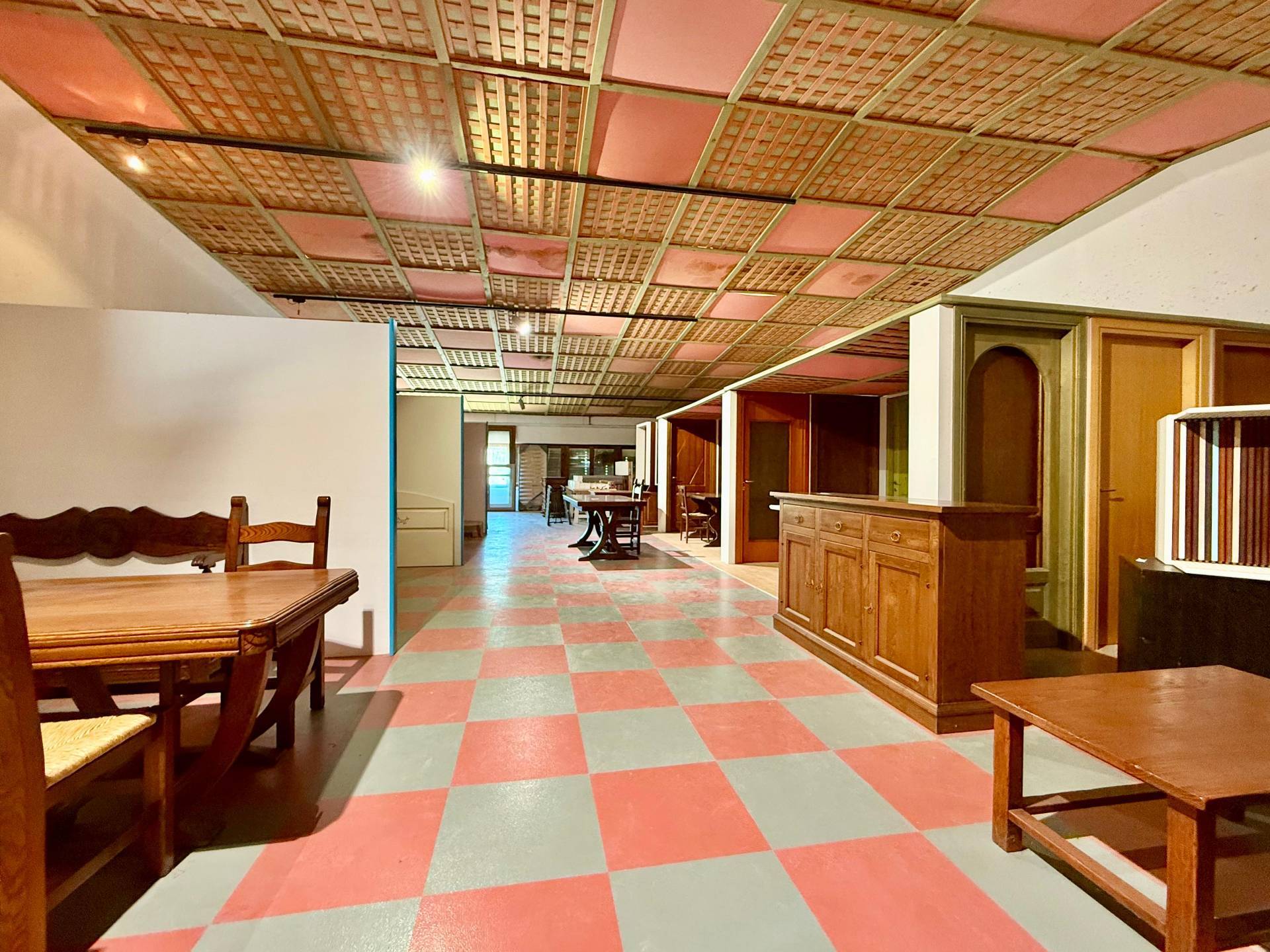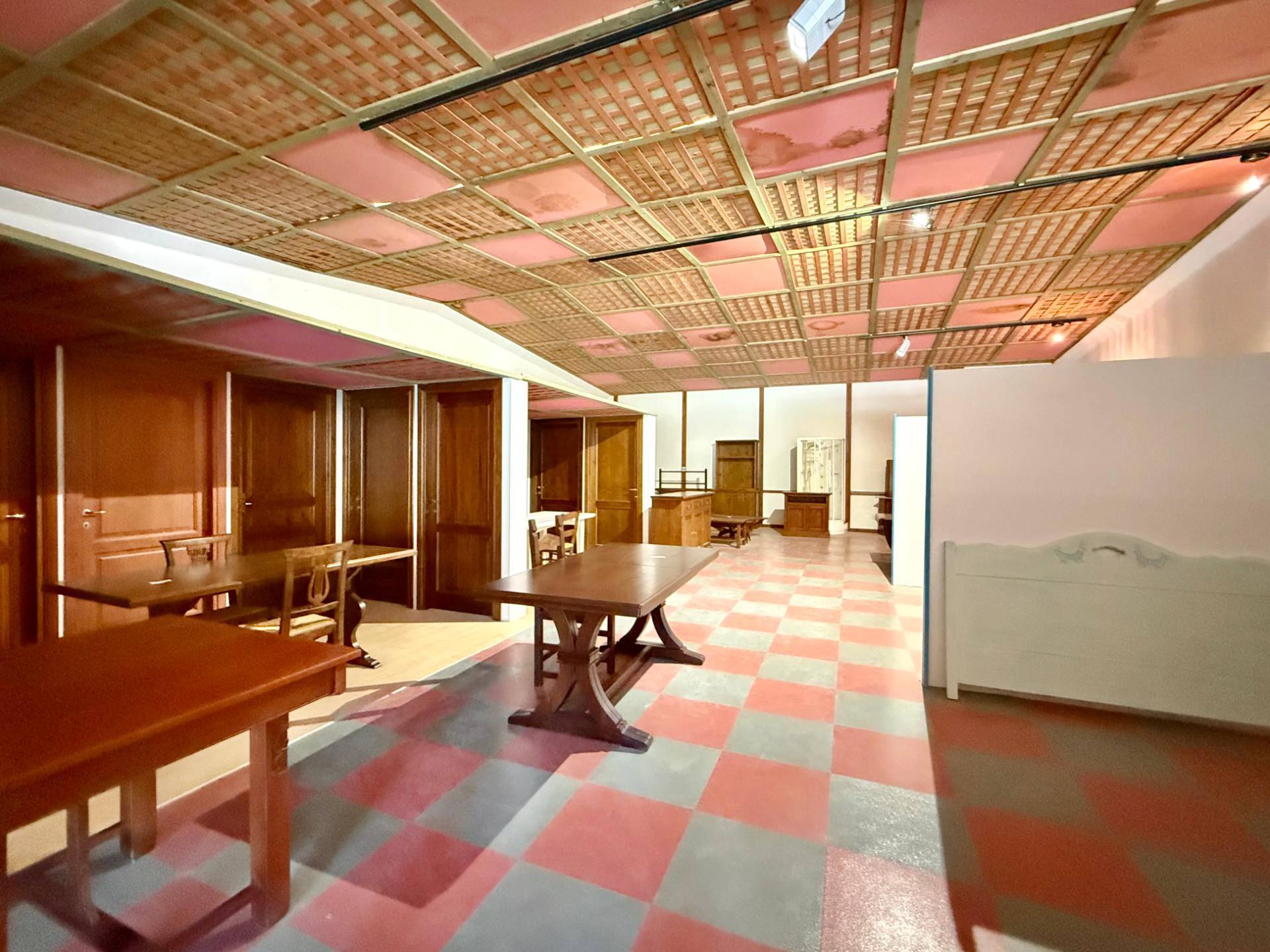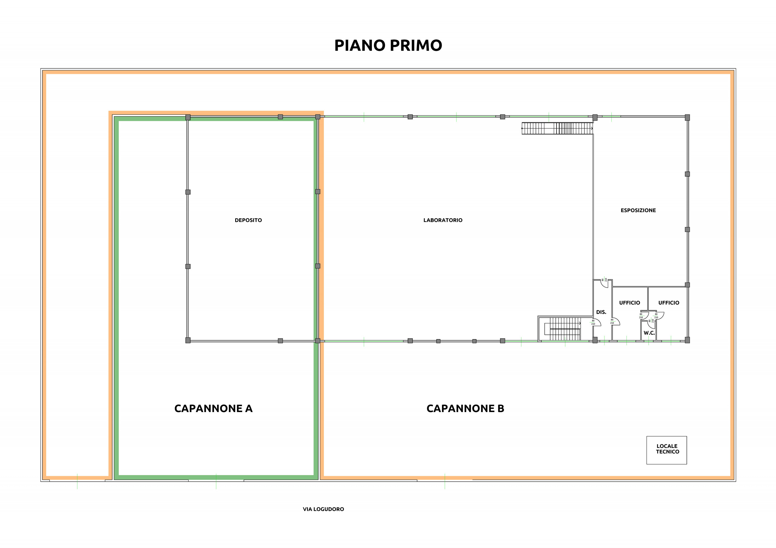 da un unico locale di 320 mq interni con doppio ingresso di altezza 3.50 m, e il cortile esterno misura 480 mq.