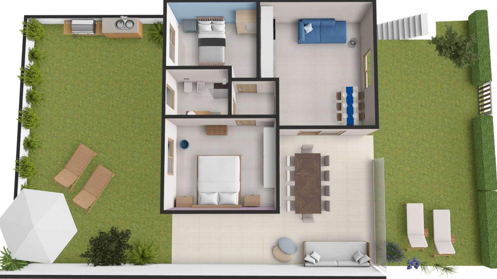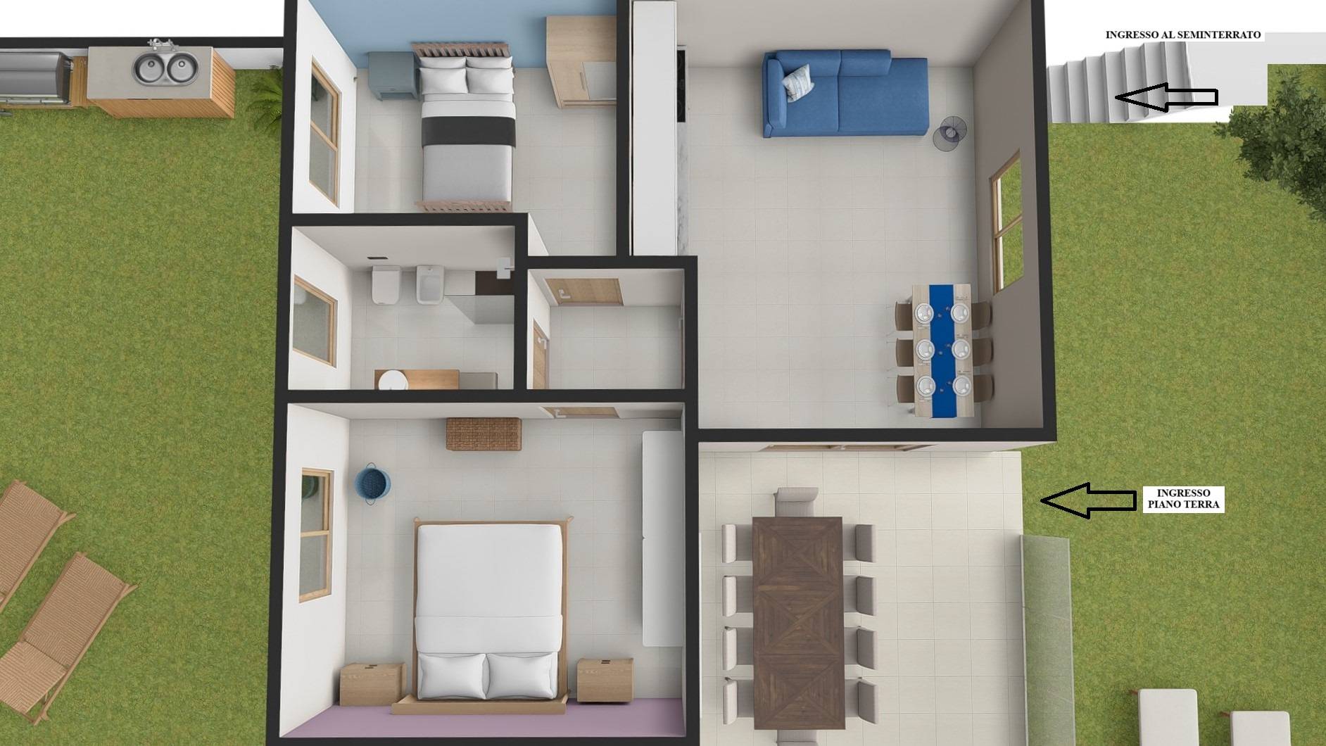 Un valore aggiunto di questa villa è il piano seminterrato, dove è stato ricavato un ulteriore appartamento indipendente, ideale per ospitare amici e parenti, garantendo loro privacy e autonomia.