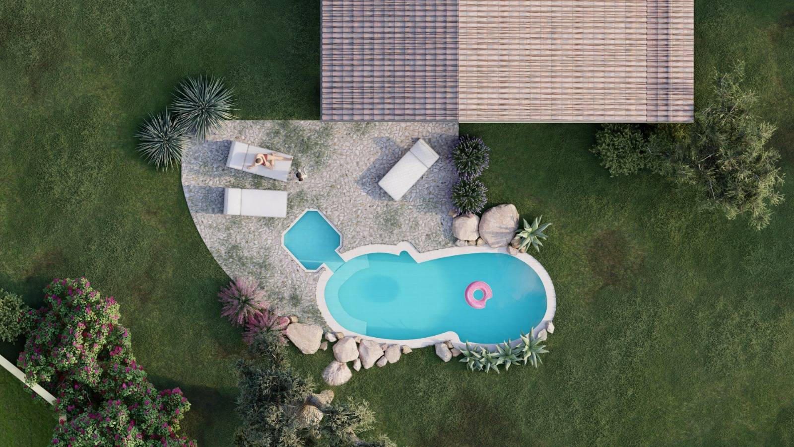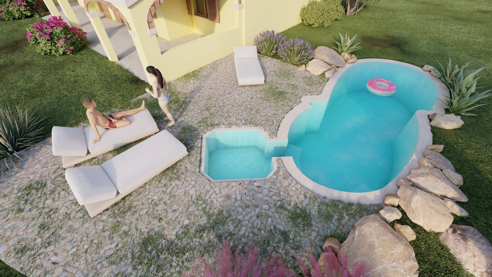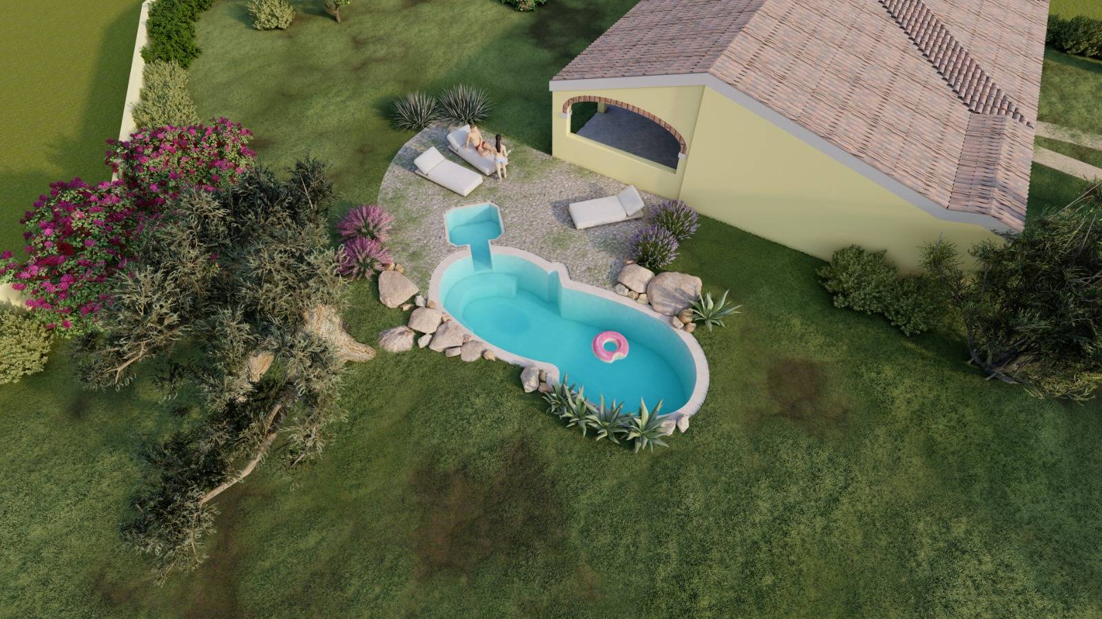 VILLASIMIUS - Nel cuore del paese, nei pressi dalle meravigliose spiagge, elegante villa caposchiera con piscina prossima alla realizzazione.