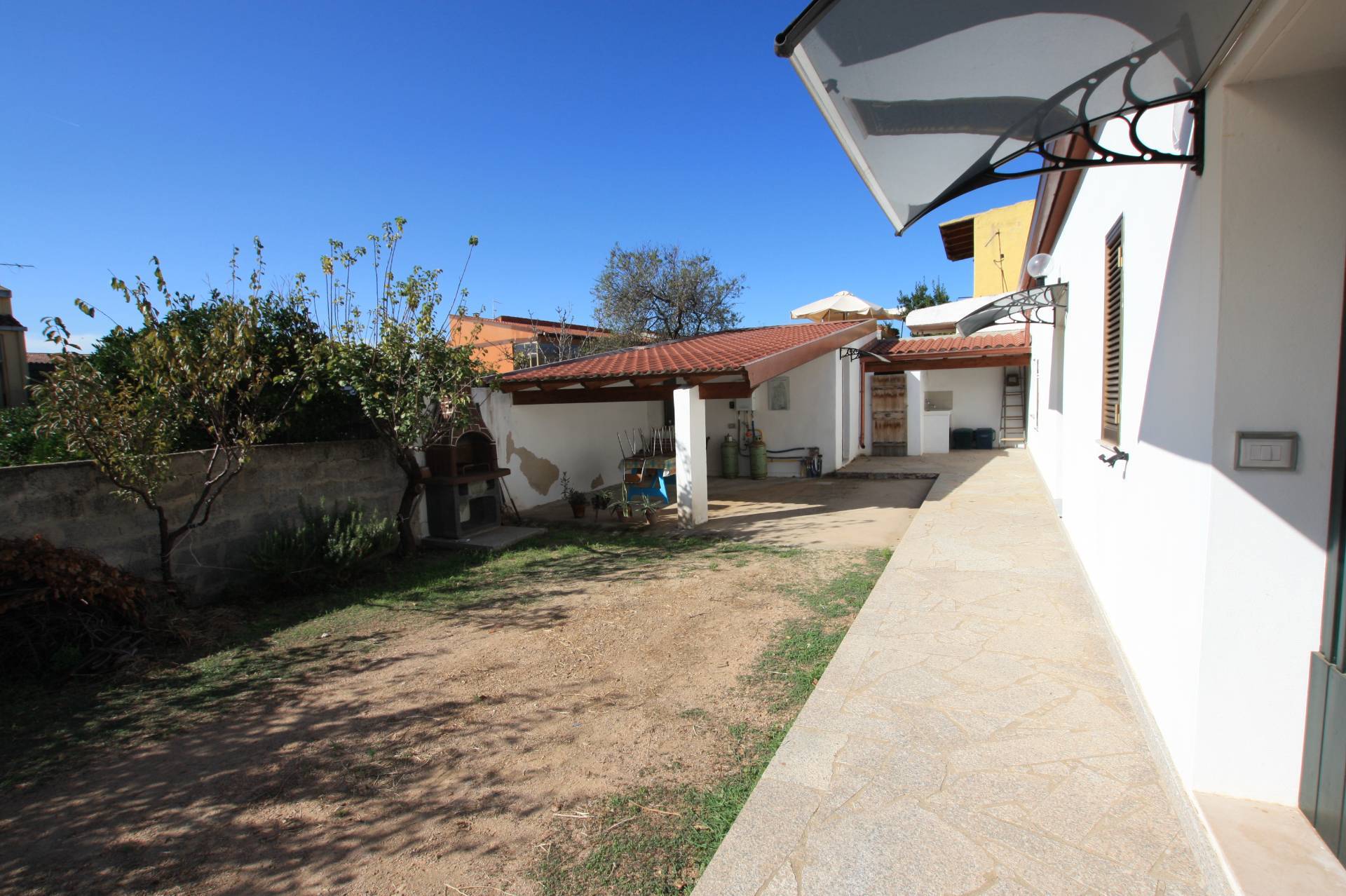 Villa composta da ampio giardino, due unità abitative separate ma confinati con possibilità di unire il tutto ricavando una villa unica. Doppio soggiorno, doppia cucina, 5 camere da letto, tre bagni, ampia veranda esterna con area barbecue, ampio giardino privato con la possibilità di realizzare una mega piscina. La casa viene venduta compreso l'arredamento classico oggi presente all'interno della casa, possibilità di sopraelevare il tutto in considerazione del fatto che il terreno ha notevoli volumi disponibili non utilizzati. Davvero un ottimo investimento con potenziale unico. Il tutto a pochi passi dai servizi, quali: supermarket, posta e farmacia. Dista dal mare 3 minuti in auto 15 minuti a piedi.
