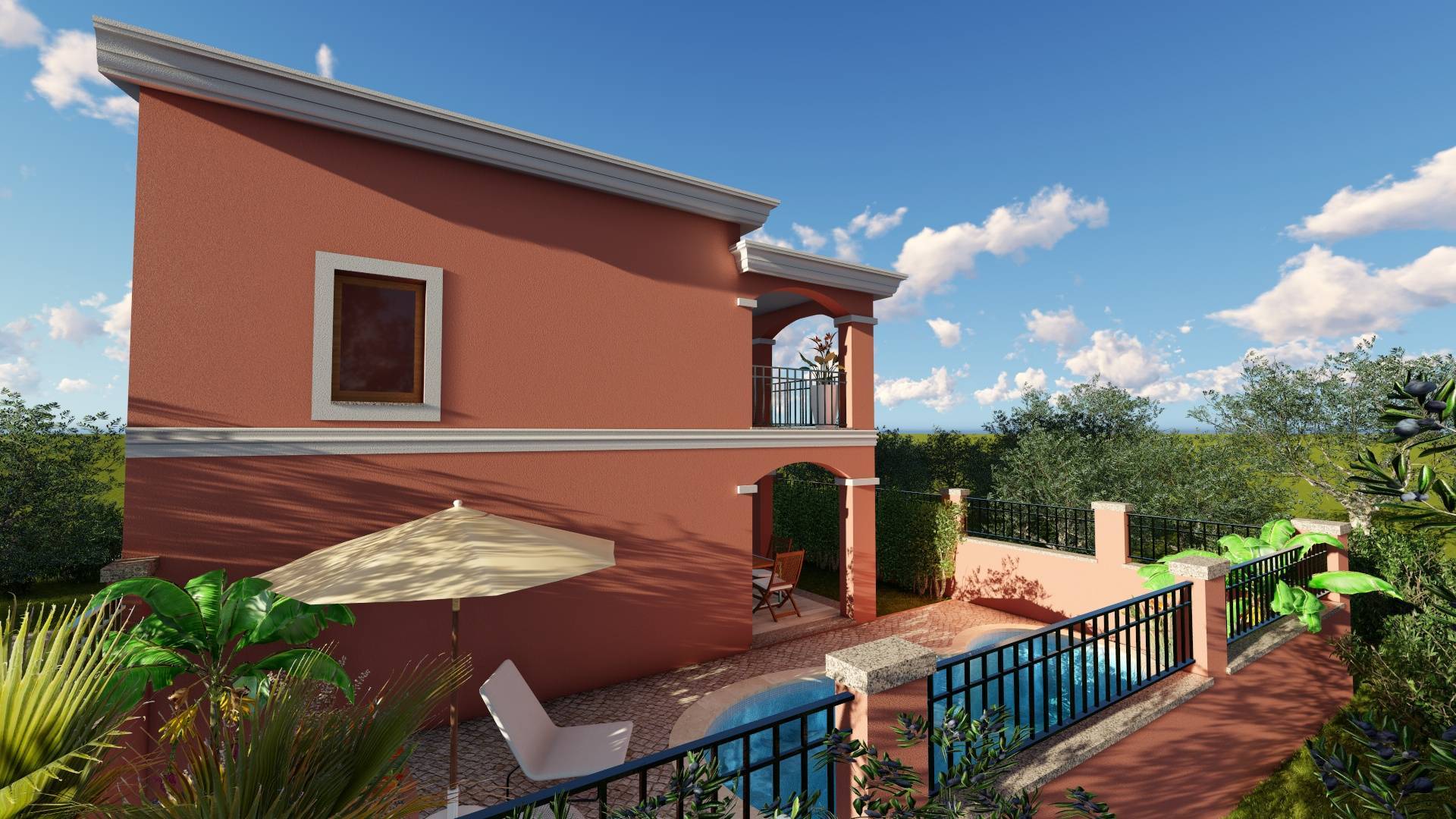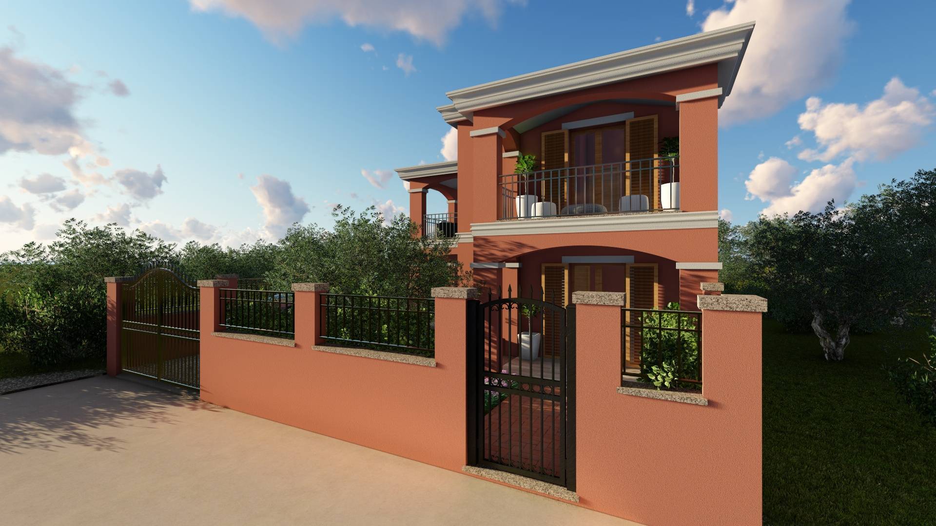 CASTIADAS - All'interno della graziosa e tranquilla borgata di Olia Speciosa, proponiamo una villetta bifamiliare su due livelli di nuova costruzione.