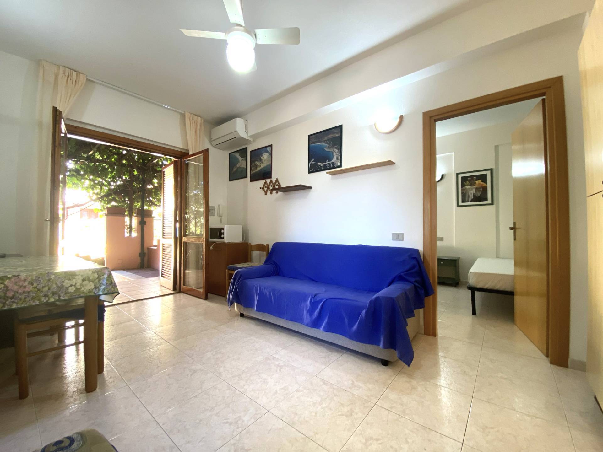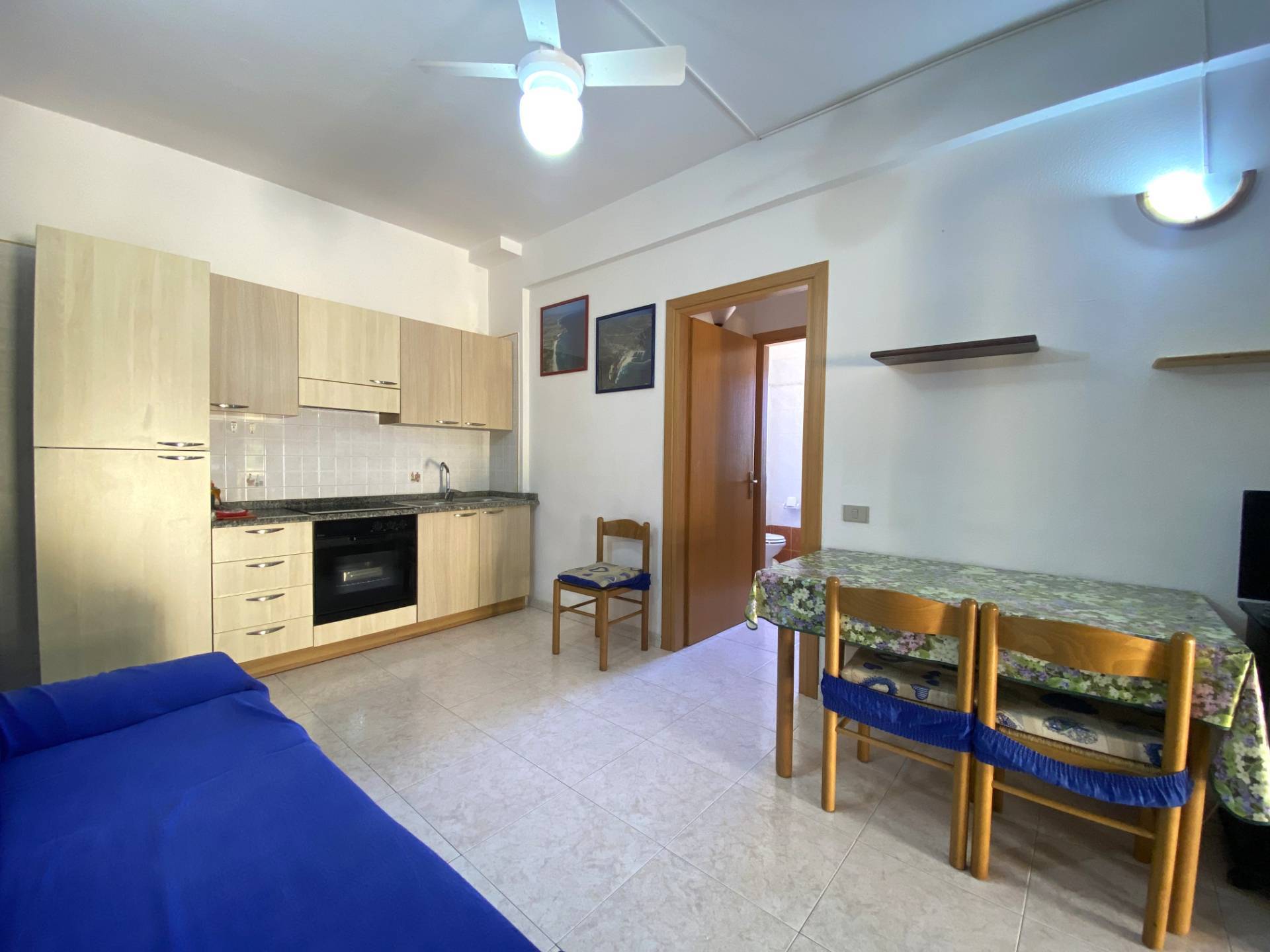 L'interno si sviluppa su un unico livello, con spazi ben distribuiti e una zona giorno funzionale e luminosa, composta da cucina con parete attrezzata, tavolo da pranzo e area relax.