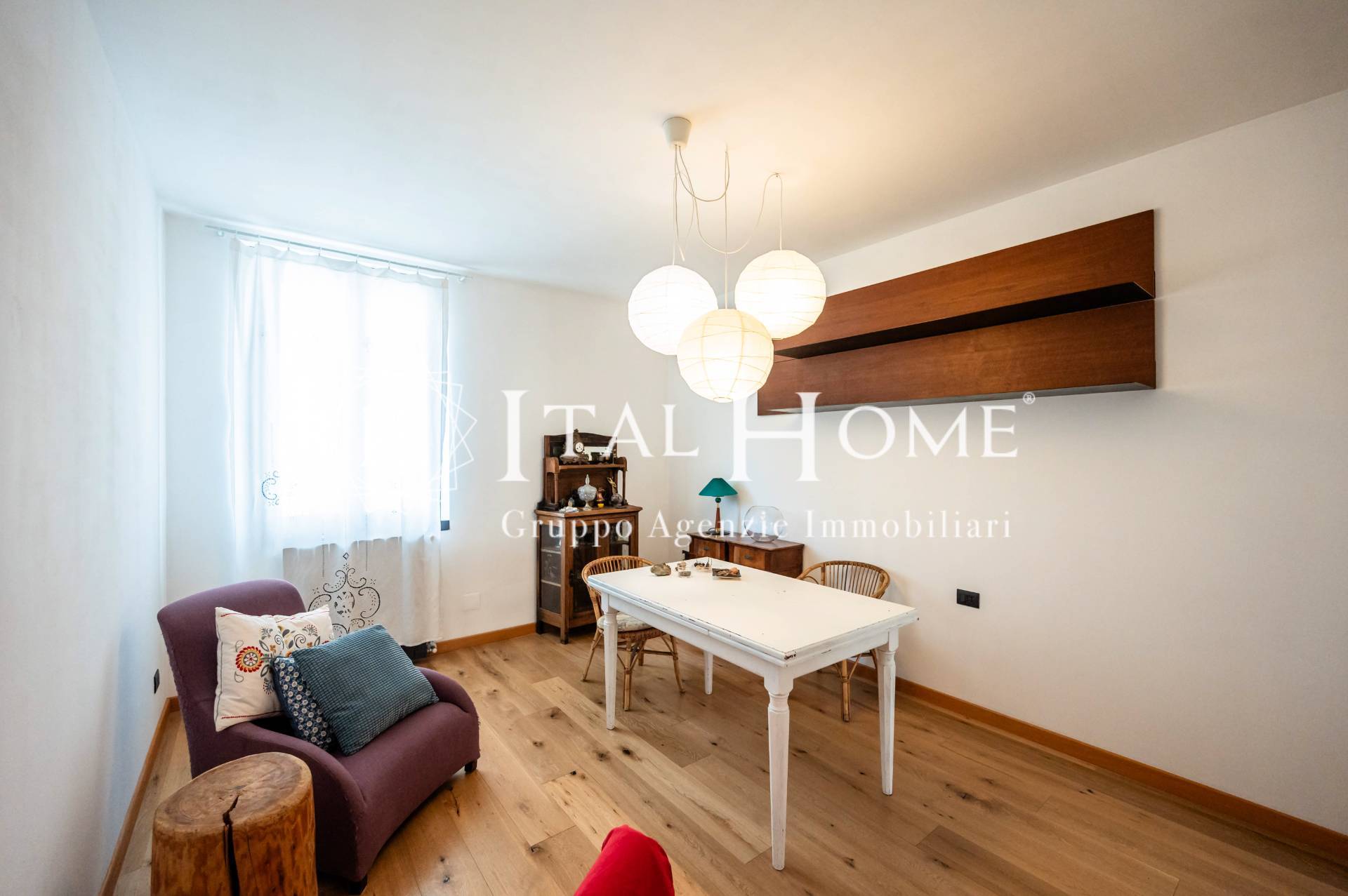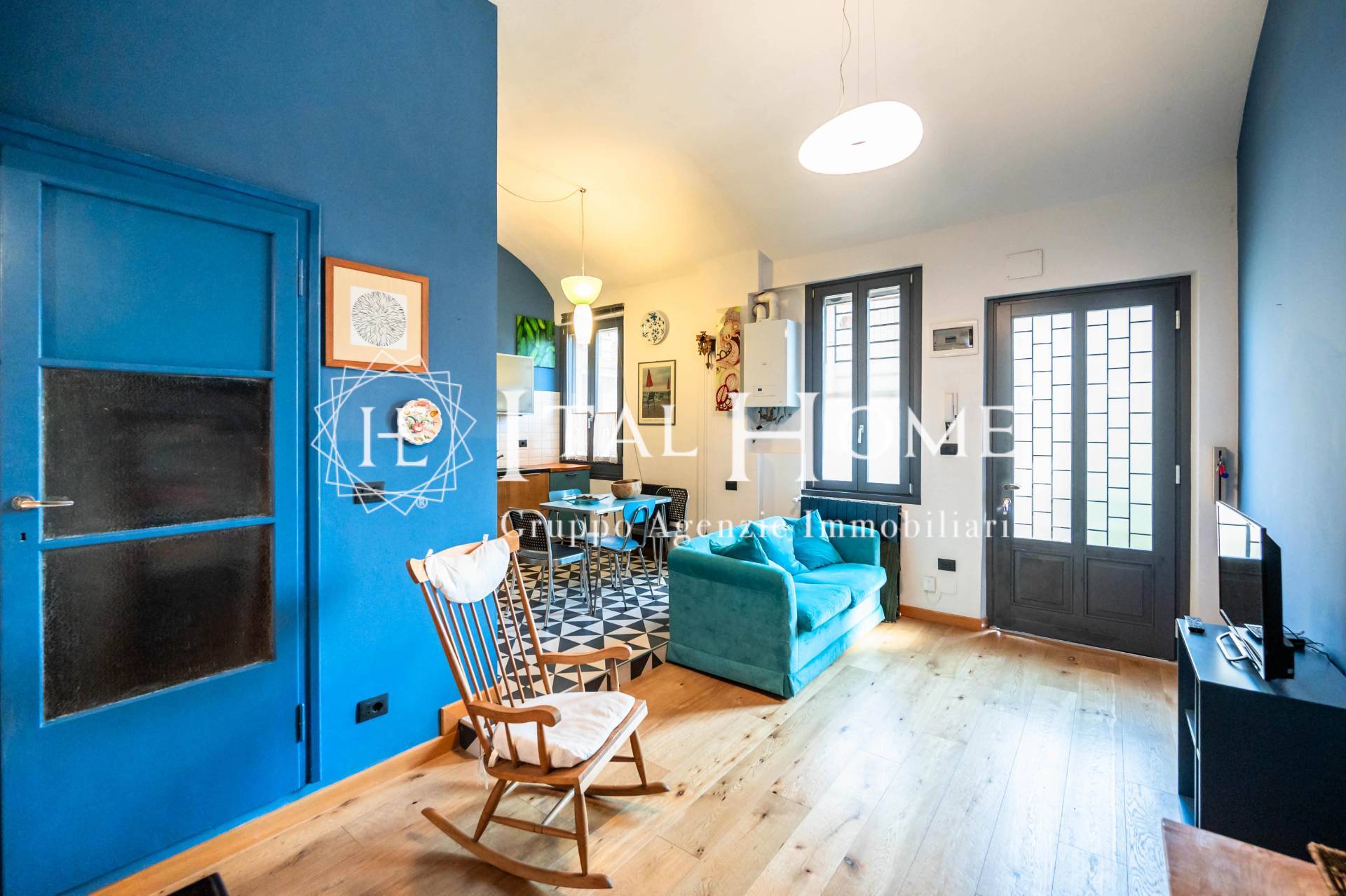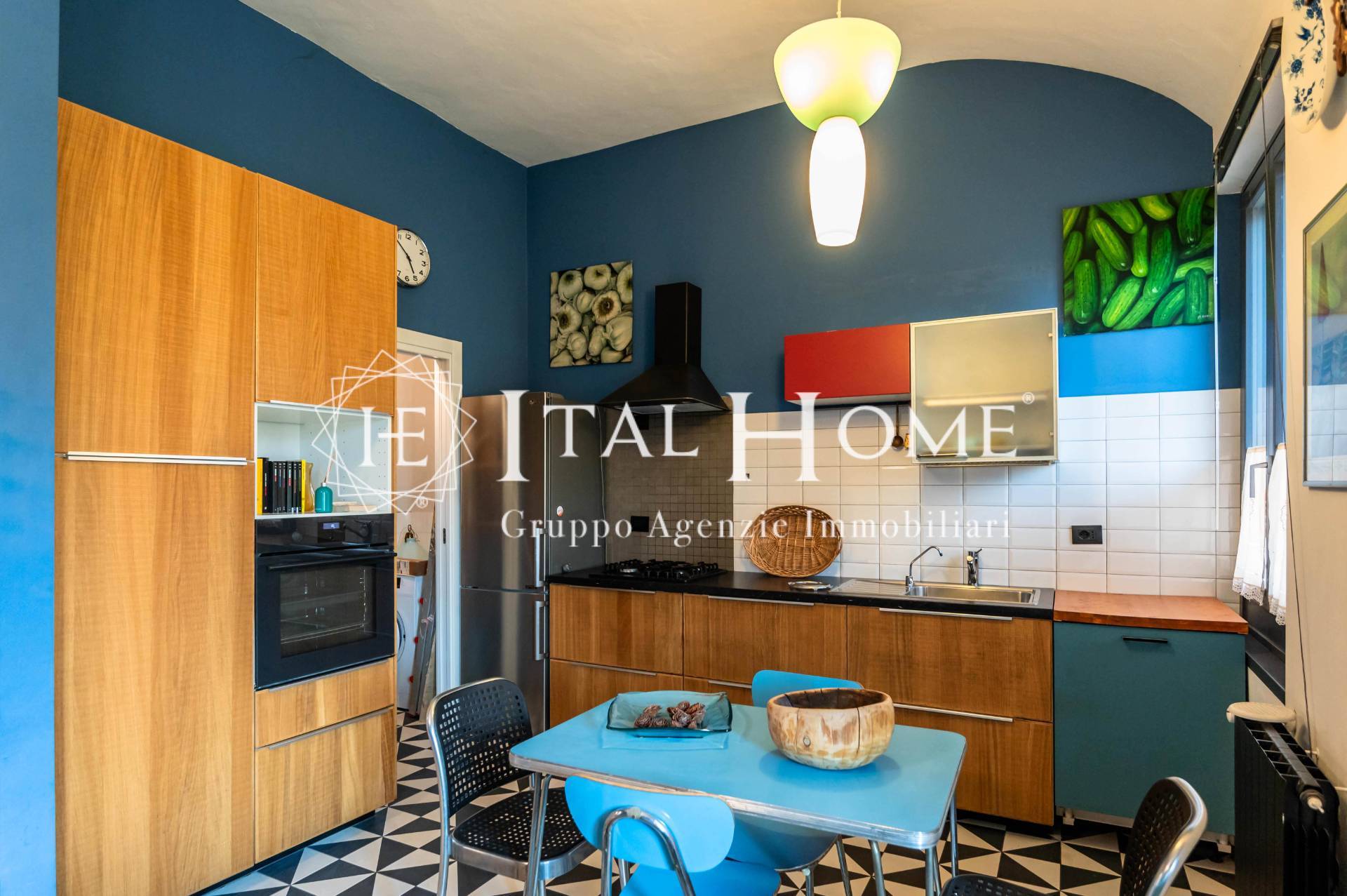 Tutto ristrutturato in ogni dettaglio con arredo studiato e particolari quali: travi a vista anticate, pietre, parquet, mattonelle esagonali con giochi di colore etc..
