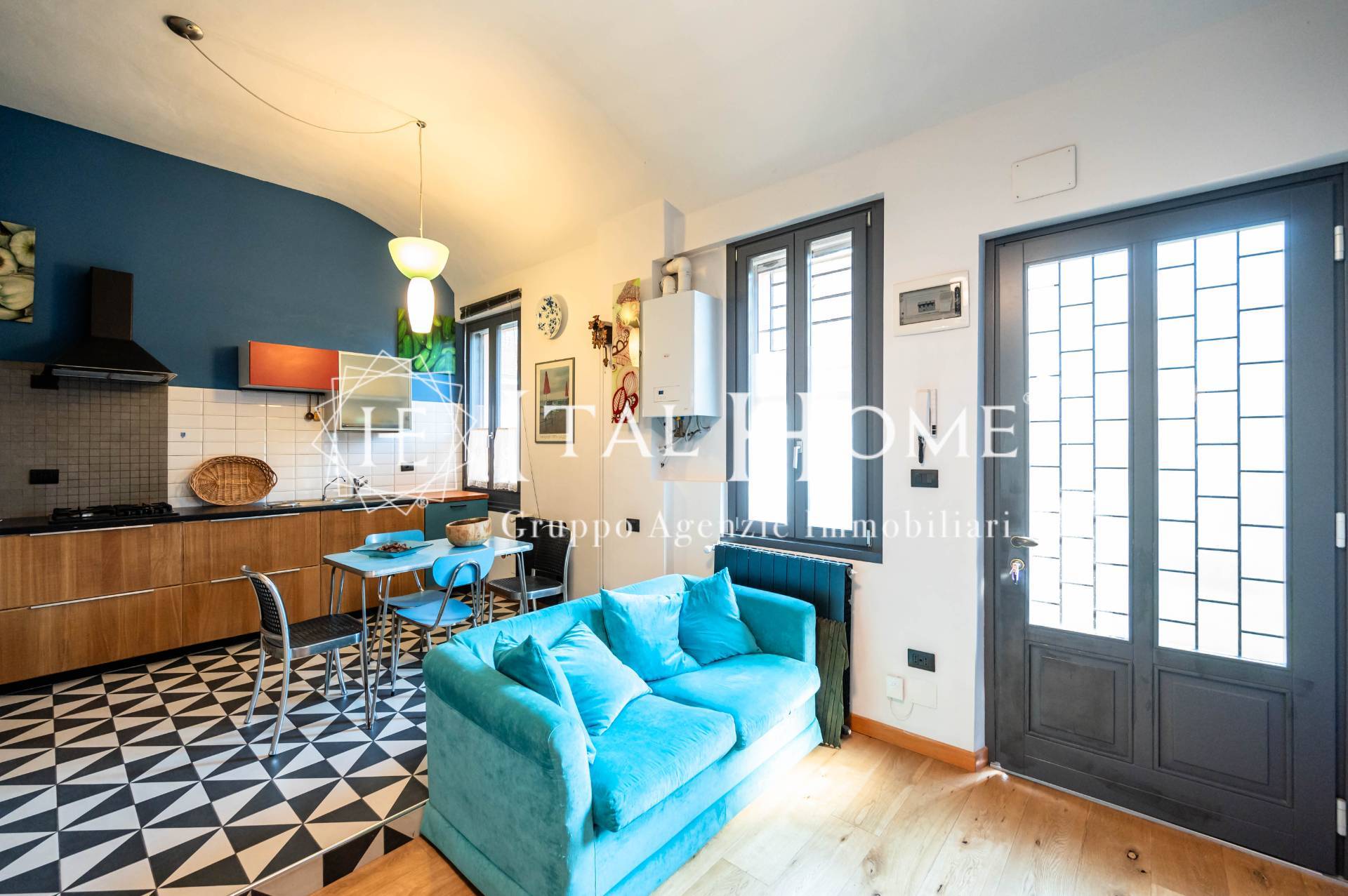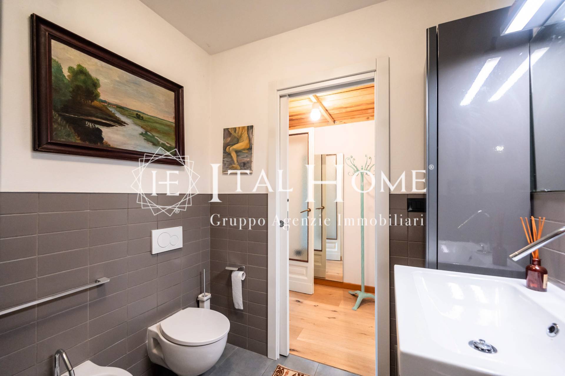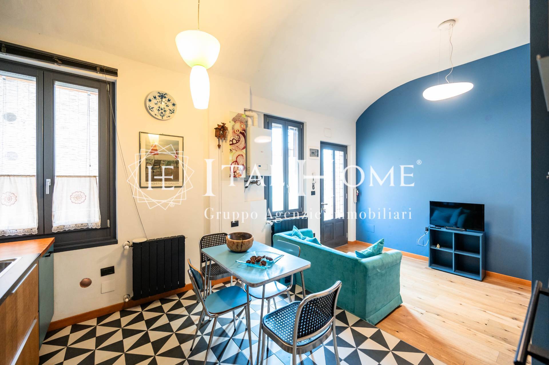 Tutto ristrutturato in ogni dettaglio con arredo studiato e particolari quali: travi a vista anticate, pietre, parquet, mattonelle esagonali con giochi di colore etc..