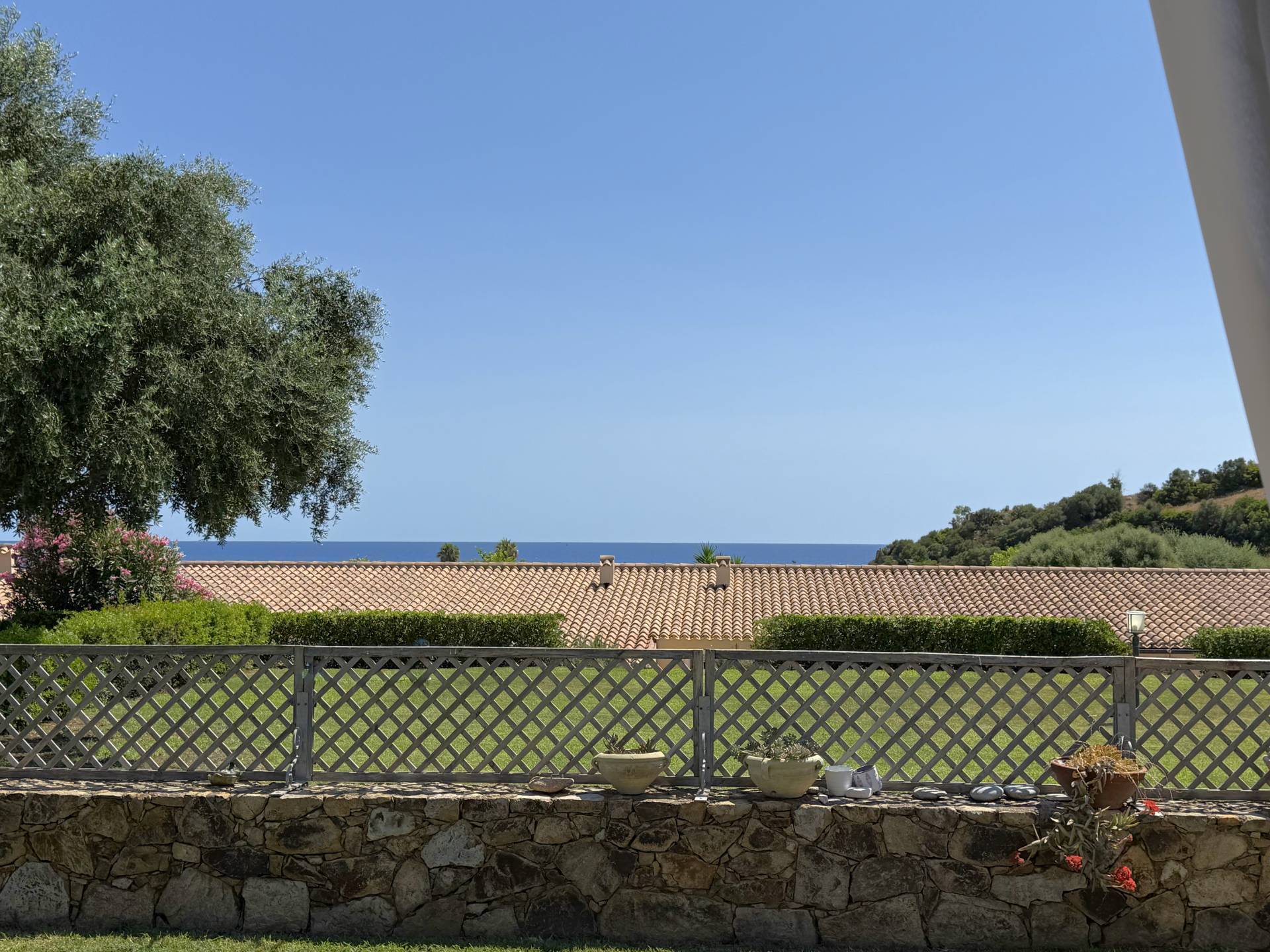 Il vero spettacolo inizia all'esterno: dal curato giardino e dalla fresca veranda si può godere di una vista sul mare e sulla piscina.