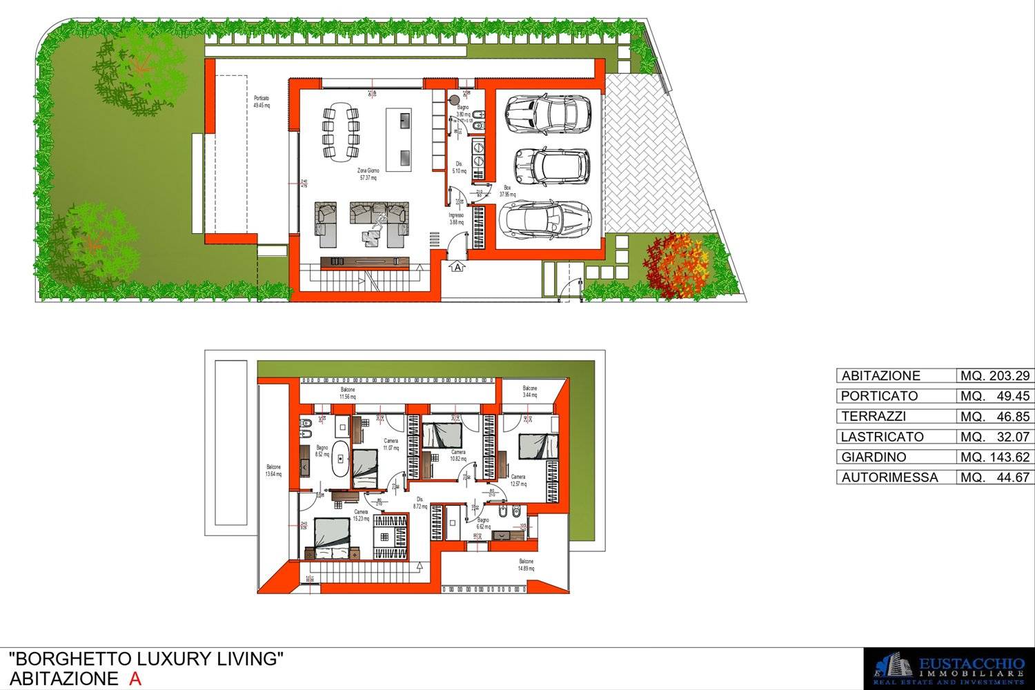 Iniziamo subito con il fantastico box all'americana, talmente ampio da poter contenere ben tre macchine, e dal quale abbiamo l'accesso diretto all'appartamento, al cui interno verremo subito colpiti dall'elegante soggiorno comprensivo di moderna cucina a vista, reso molto luminoso dalla presenza delle grandi vetrate affacciate sul rigoglioso giardino privato dove godersi momenti di puro relax respirando aria fresca; come ultimo spazio di questo piano abbiamo il primo comodo bagno. Salendo al piano superiore troveremo le quattro accoglienti camere da letto, di cui una padronale dotata di esclusiva cabina armadio, due spaziosi bagni completi, e addirittura tre balconi!!