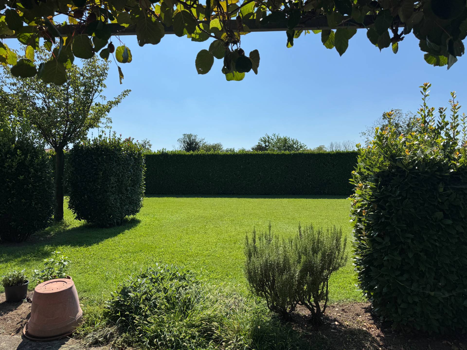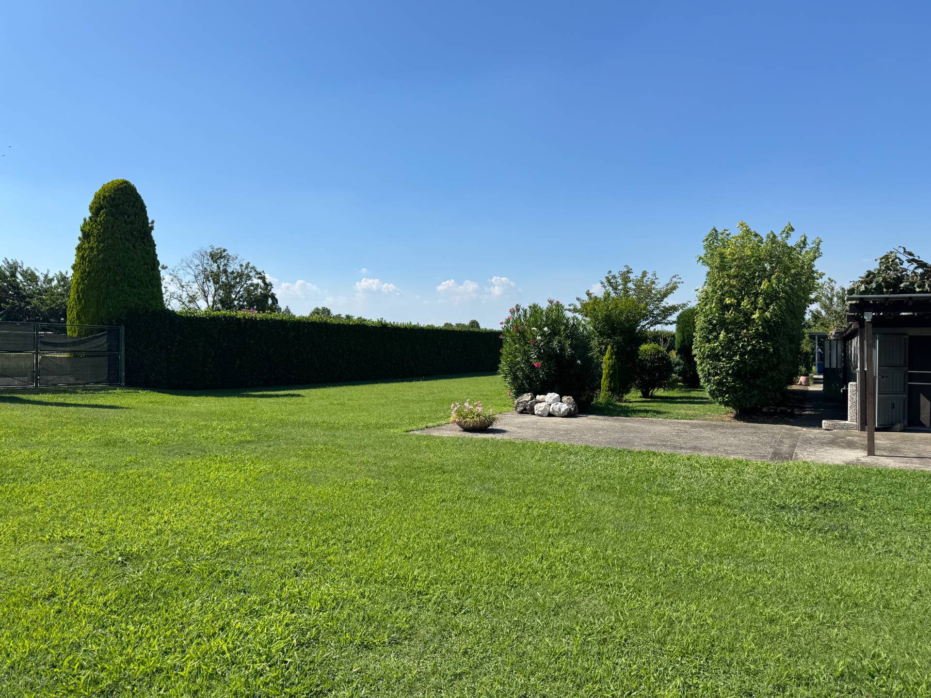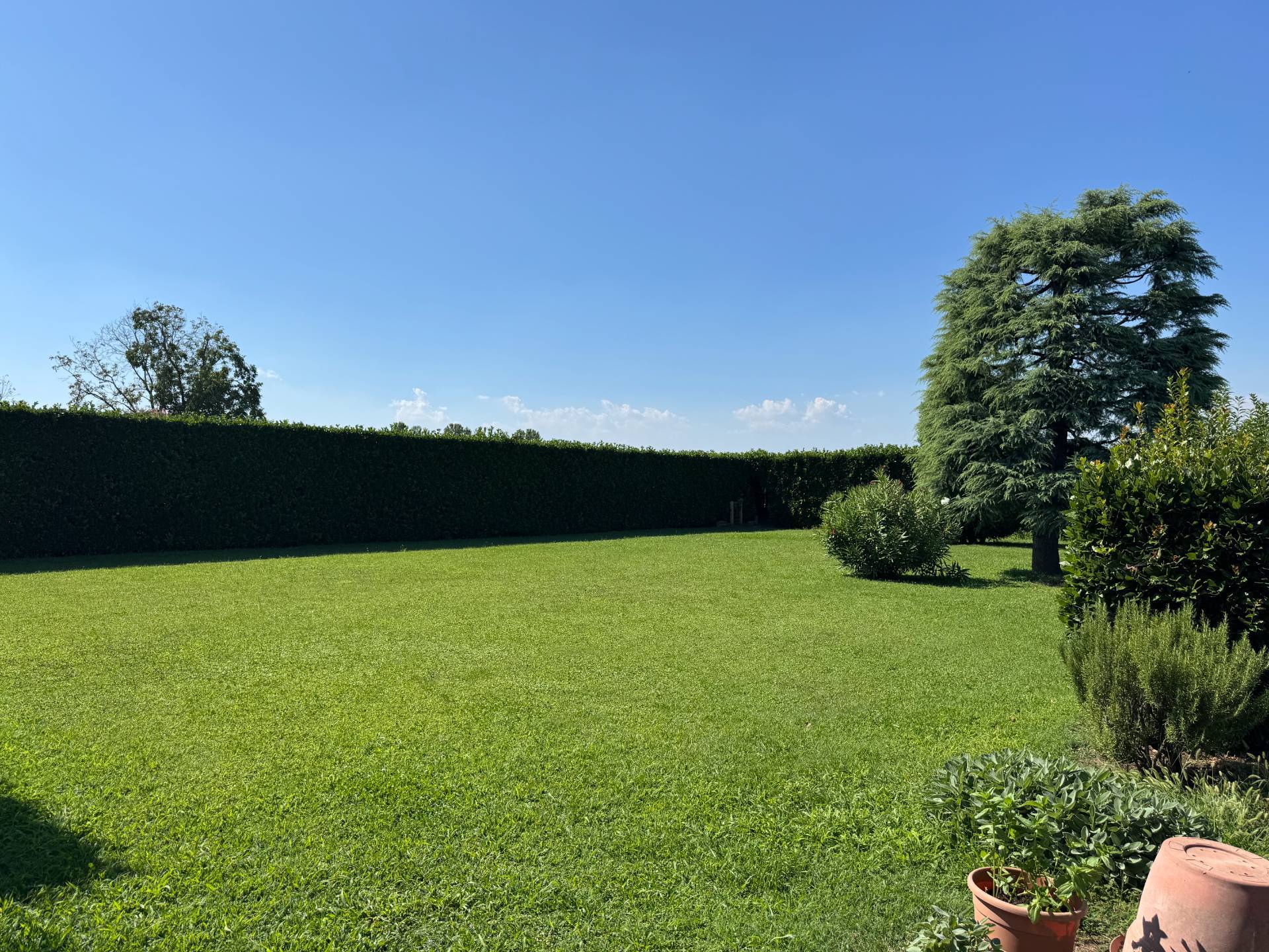 Il giardino, con impianto d'irrigazione automatico, è di circa 2.300mq.