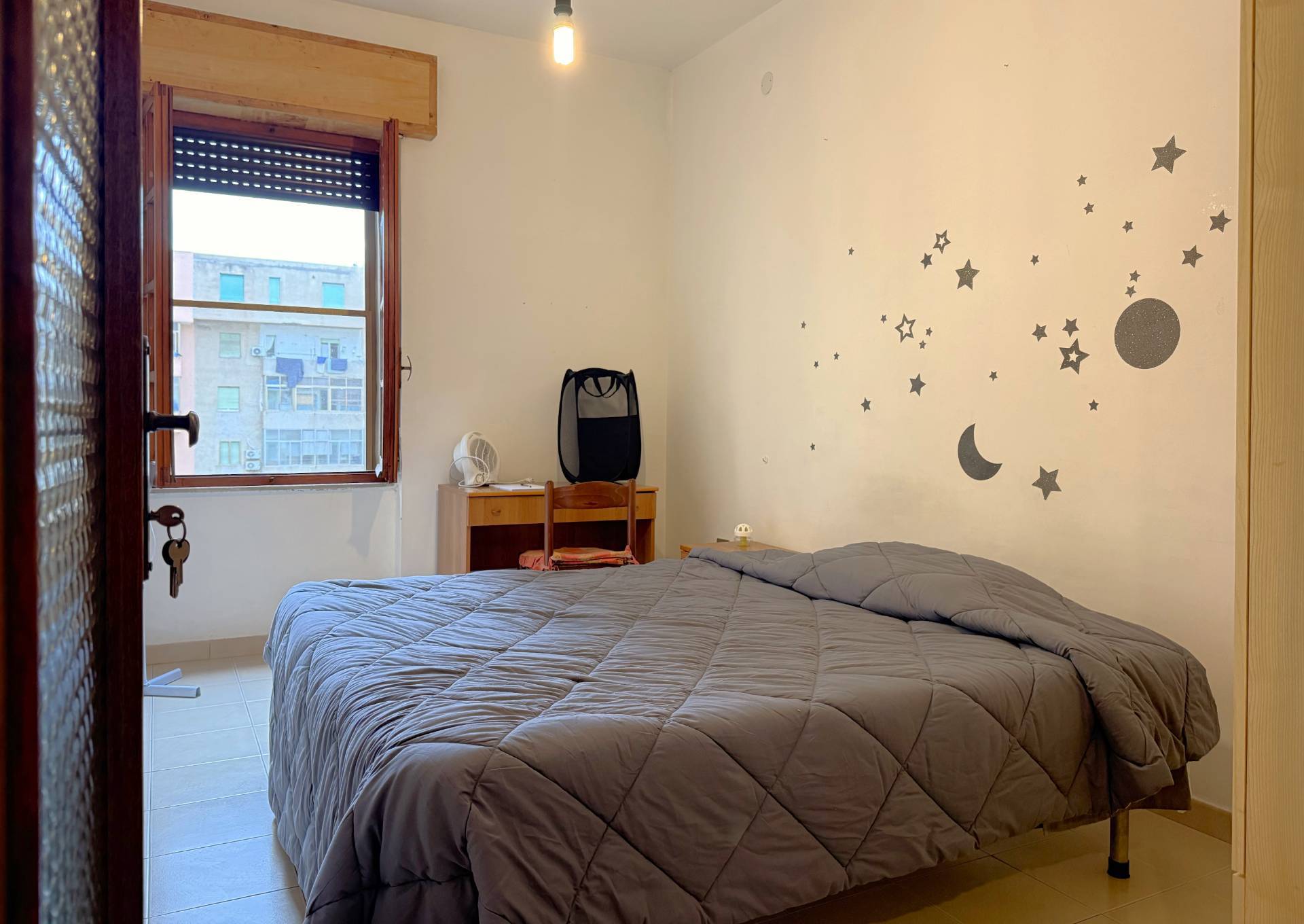 L'immobile è composto da: Quattro ampie e luminose camere da letto, cucina abitabile, bagno finestrato, due balconi: uno con affaccio sulla via principale, l'altro sul cortile interno