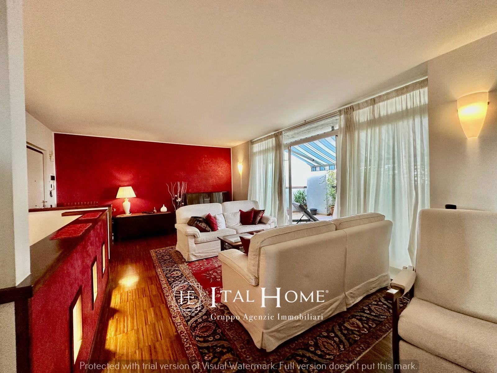 2 ascensori condominiali, un ascensore privato interno all'abitazione (per abbattere qualsiasi barriera architettonica ), pavimentazioni in tech su tutta la zona living e pavimentazione in parquet di ulivo in tutta la zona notte, climatizzazione zona giorno/notte, 2 caldaie per servire entrambi i piani, tapparelle motorizzate, tendalini automatizzati con antivento sui terrazzi, impianto d'allarme volumetrico perimetrale, infissi di recente installazione in PVC con vetro termico e con porte scorrevoli, camino e lavabo sul terrazzo (per godersi al meglio la bella stagione) e 2 porte blindate su entrambi i piani.