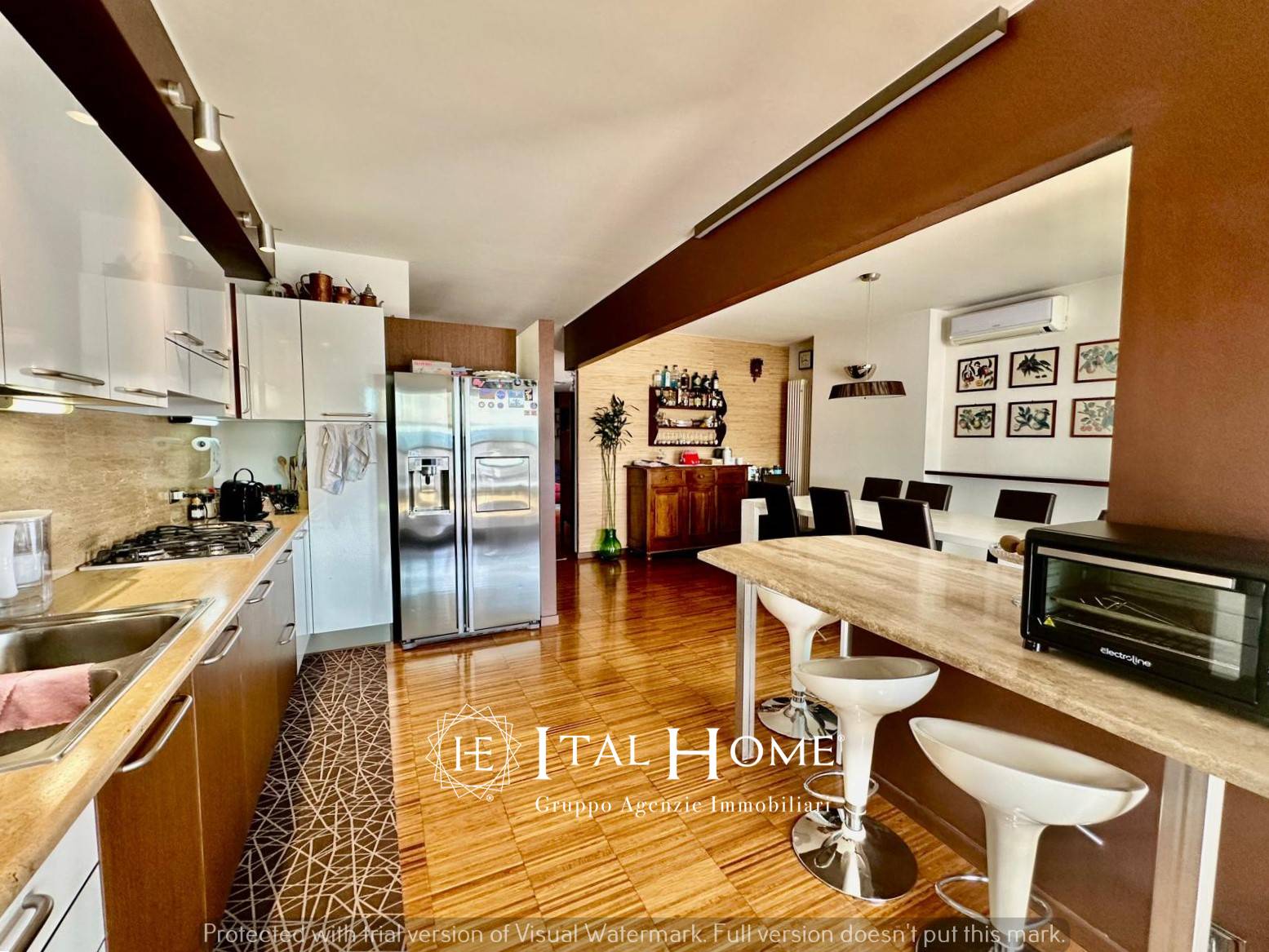 -piano 5°: vano ascensore, 4 camere (di cui una suite con bagno privato finestrato con doppio lavabo e vasca idromassaggio), un 3° bagno finestrato con doccia idromassaggio e cromoterapia, 2 balconi, un ampio ripostiglio, armadiature a nicchia inserite nei corridoi ed una cabina armadio. Possibilità di adibire a lavanderia una delle 4 camere.