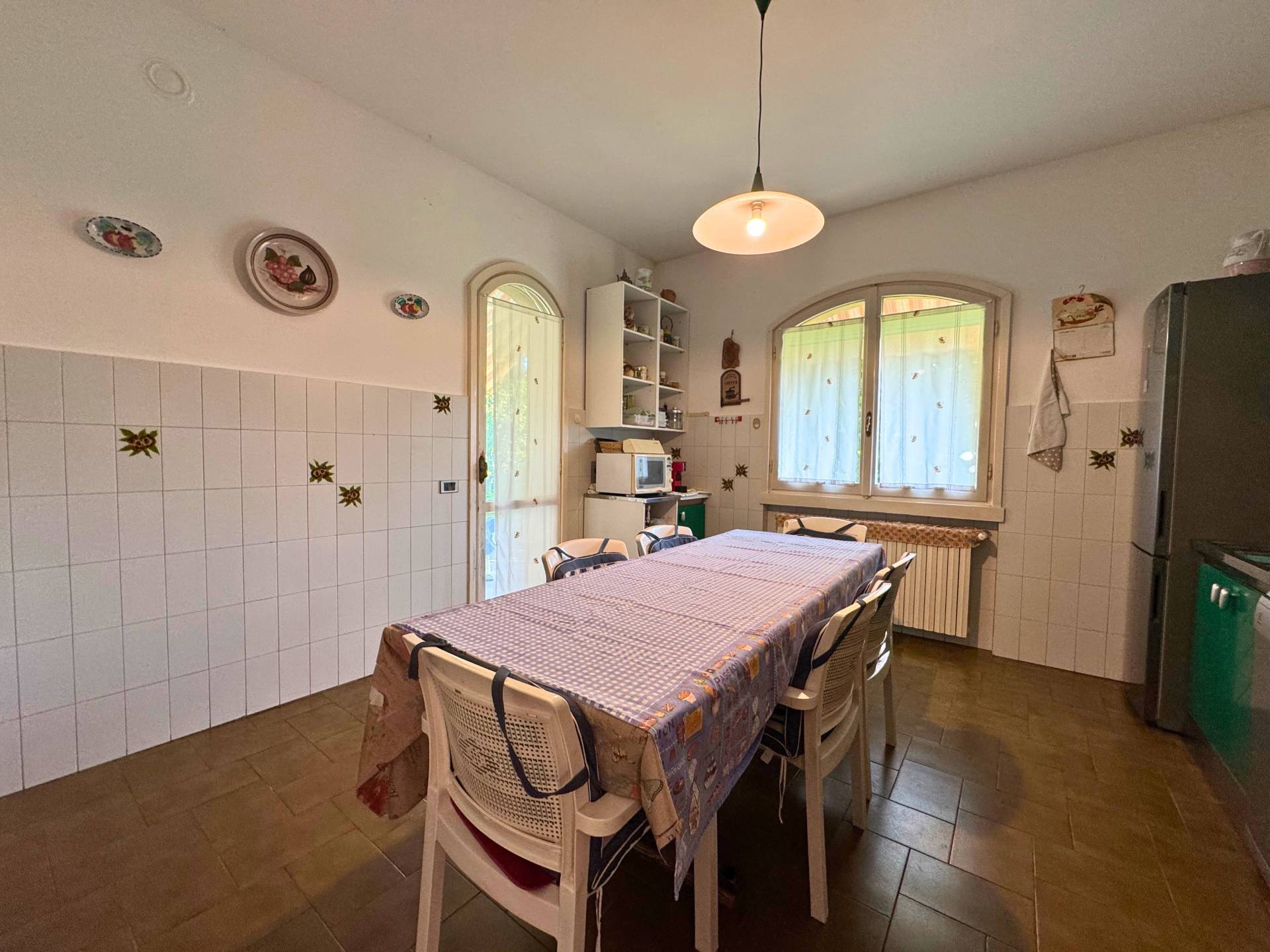 Il piano terra è composto dalla sala con zona living e zona pranzo cena con accesso sul giardino laterale. La cucina è separata ed abitabile dotata di accesso al giardino dove troviamo una zona pranzo esterna per delle squisite cene all'aperto. Sempre sullo stesso piano è presente una camera da letto matrimoniale ed un bagno.