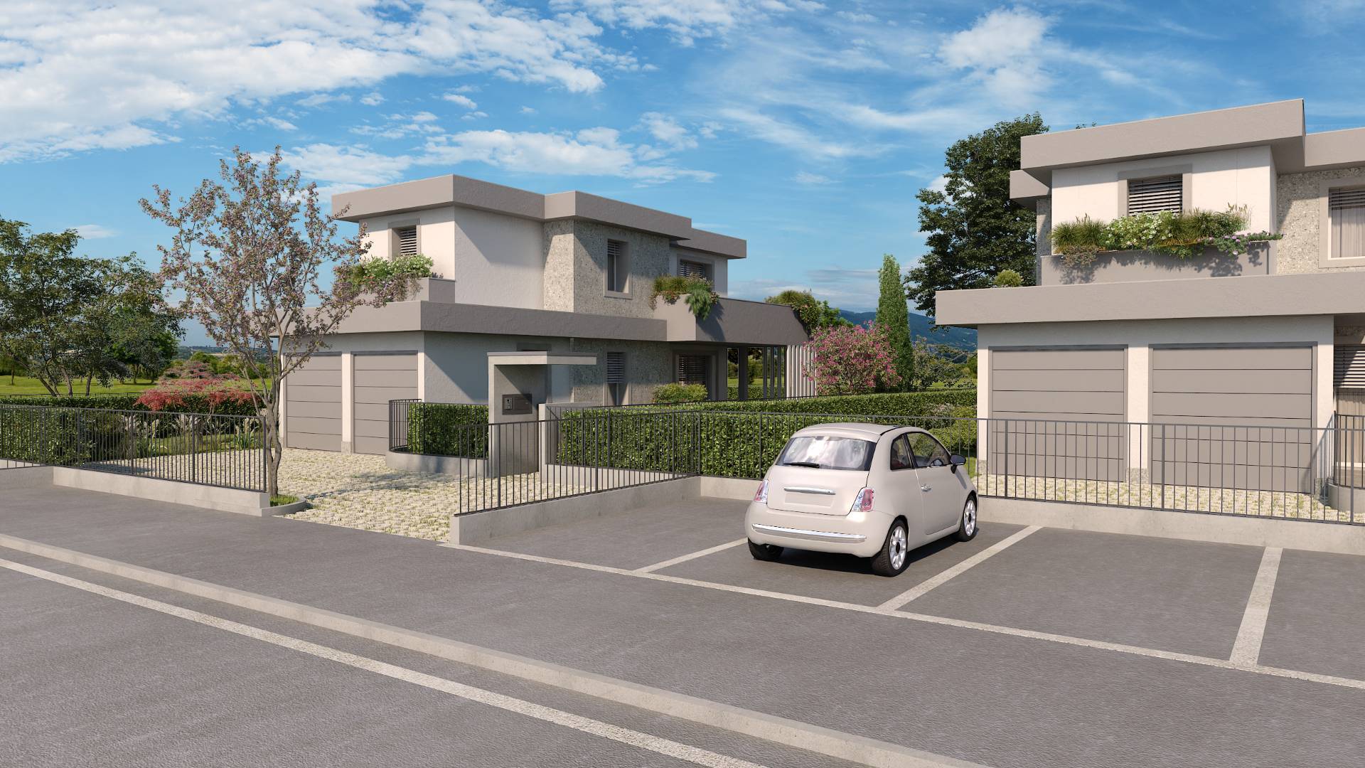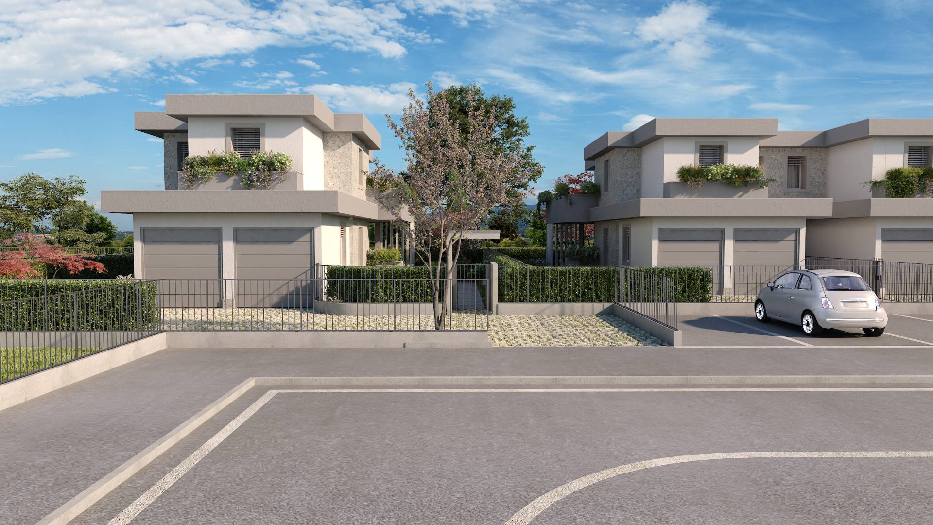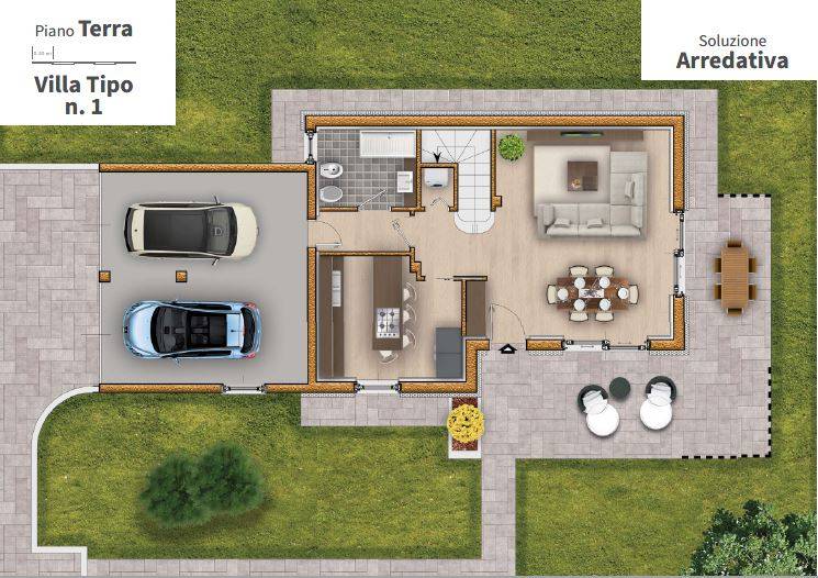 La villa dispone di una autorimessa doppia in larghezza al piano terra, collegata internamente all'abitazione, per la massima comodità.