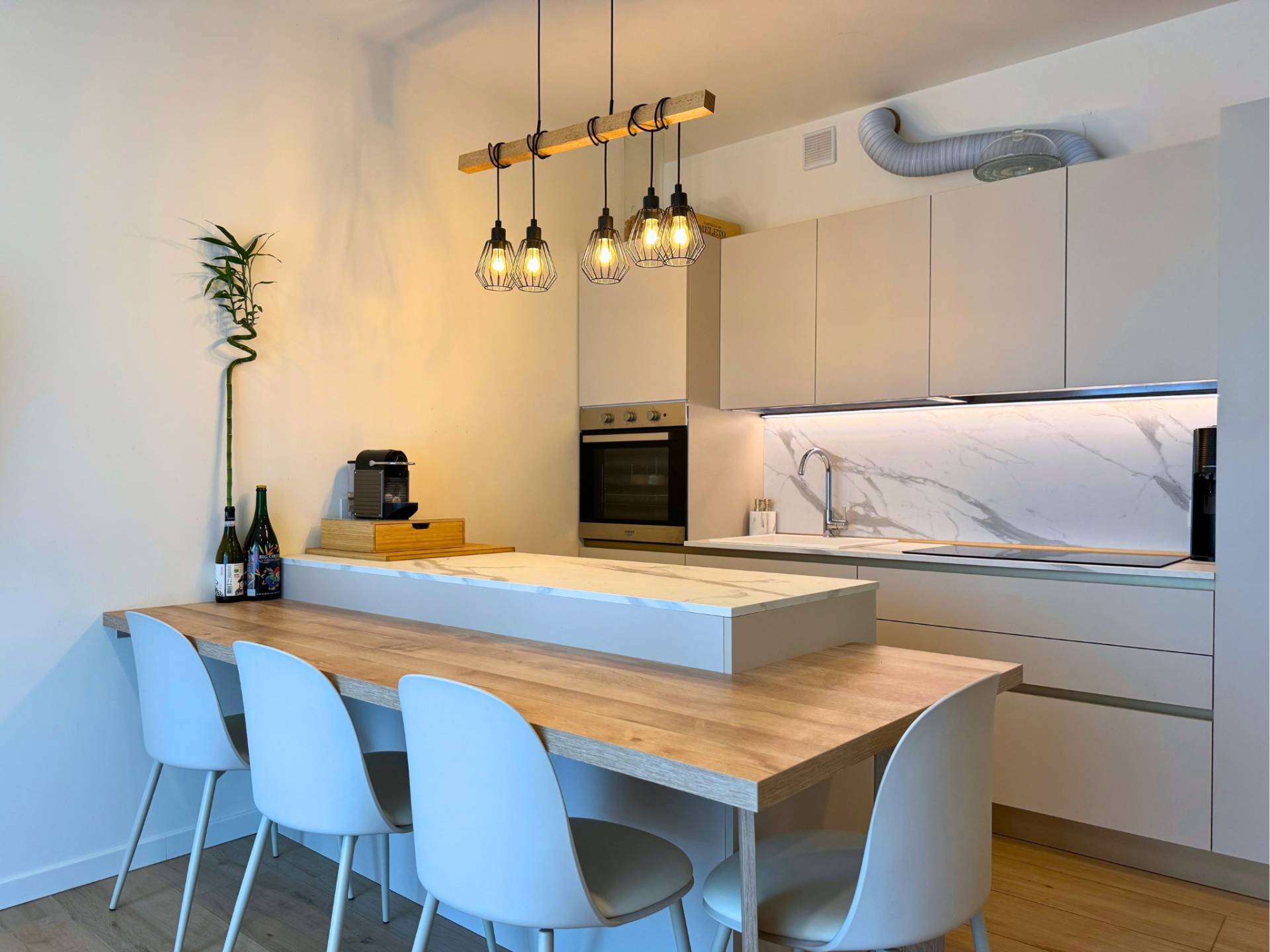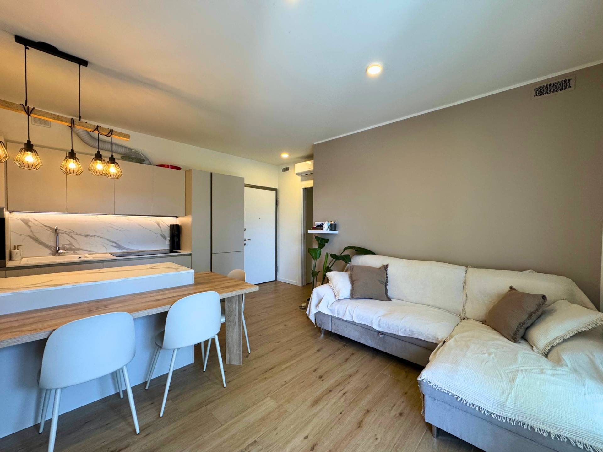 Si accede alla zona giorno composta da un raffinato open-space, che unisce il luminoso soggiorno con la moderna cucina. Una ampia porta finestra conduce al terrazzo vivibile, perfetto per cene all'aperto, momenti di relax o serate in compagnia.