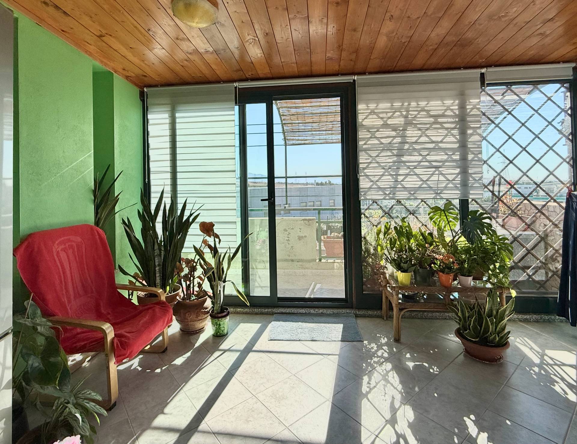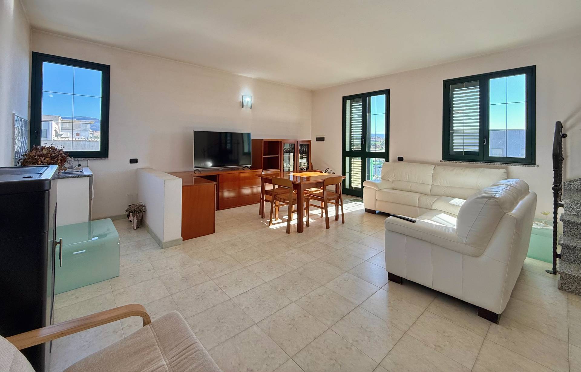 Una scala elegante conduce al secondo piano, dove l'atmosfera si fa più calda e accogliente, grazie ai dettagli curati e ai materiali di qualità. La cucina abitabile, realizzata su misura e completa di tutti gli elettrodomestici, è valorizzata dalle travi a vista e si apre su una veranda coperta, perfetta per pranzi all'aperto o momenti di relax. Da qui si accede a un lungo balcone panoramico che abbraccia l'intera facciata dell'abitazione, regalando una vista spettacolare su Cagliari, il mare e la Sella del Diavolo, particolarmente suggestiva al tramonto.