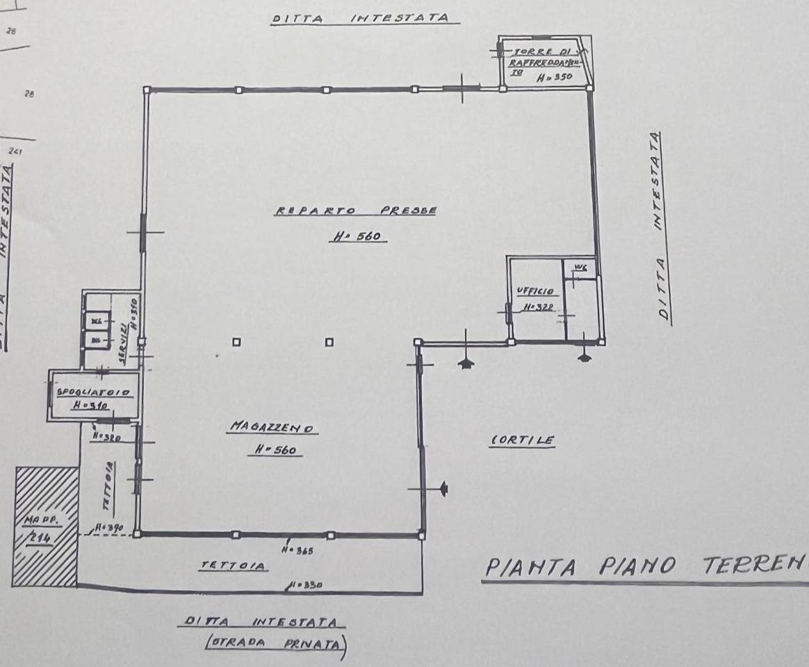 E' inoltre presente una tettoia esterna (altezza 3,60 m), utile per il deposito temporaneo di materiali.