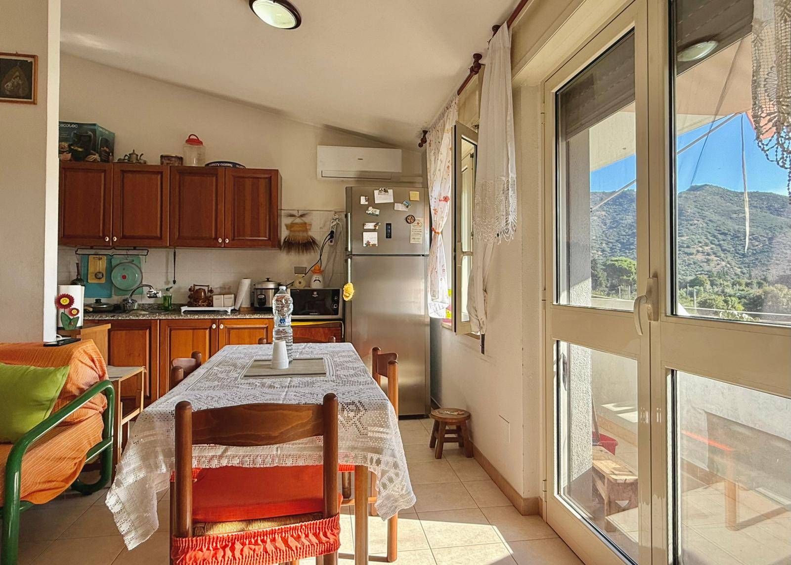 Percorrendo una comoda scala si accede all'appartamento, composto internamente da soggiorno, un angolo cottura a vista e una balconata esposta ad Est.