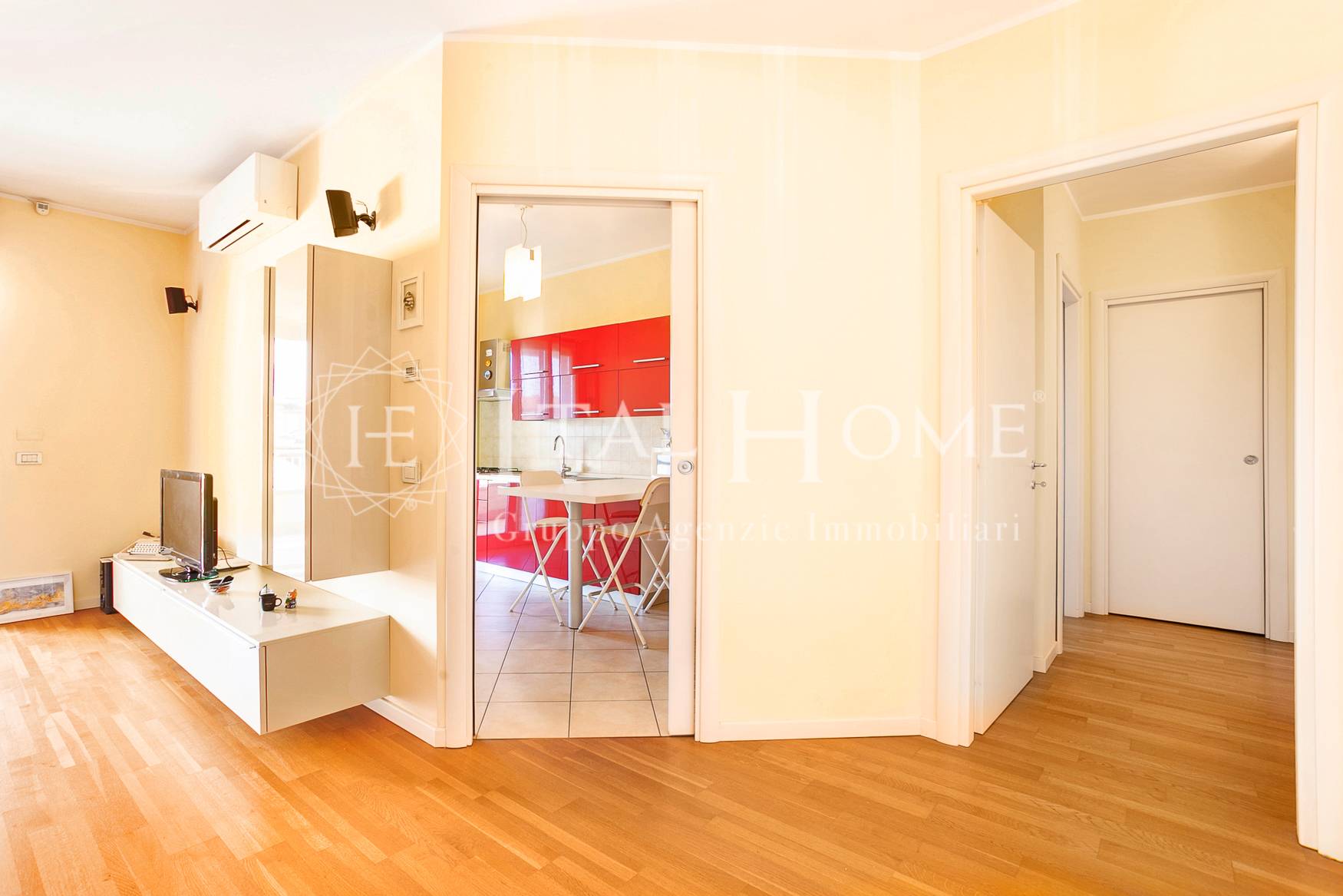 Ogni ambiente e pavimentato in parquet, ad esclusione dei bagni e della cucina, e i serramenti sono in triplo vetro anti sfondamento e legno.