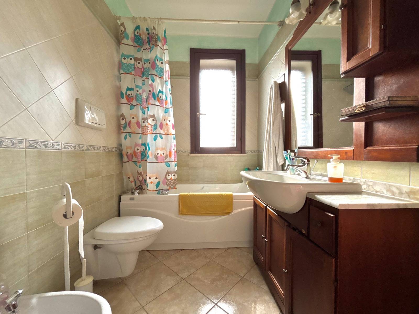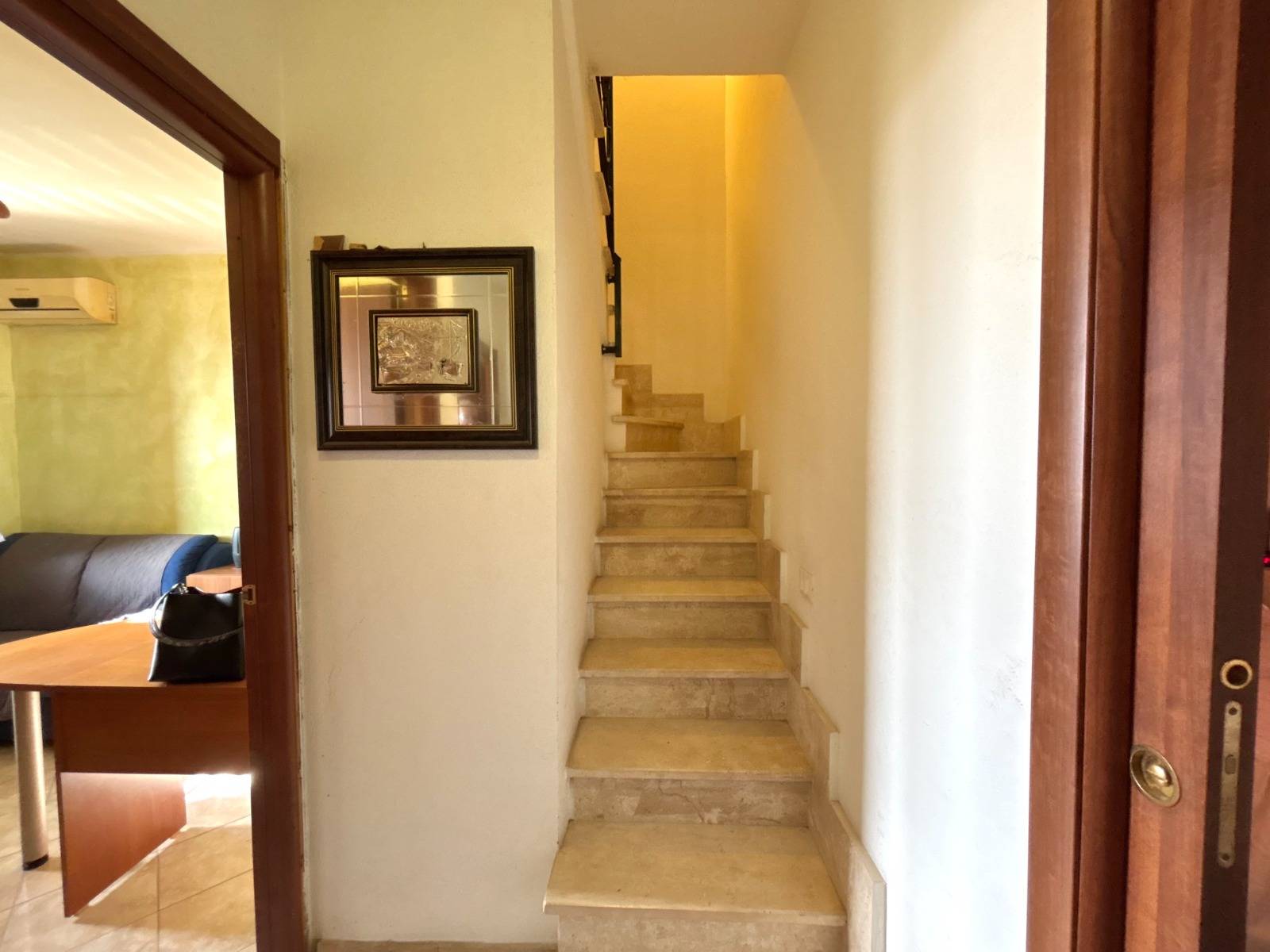 Salendo al primo piano si trova la zona notte, composta da due ampie camere, una matrimoniale e una singola, confortevoli e silenziose. Il bagno finestrato completa il livello con la sua praticità.