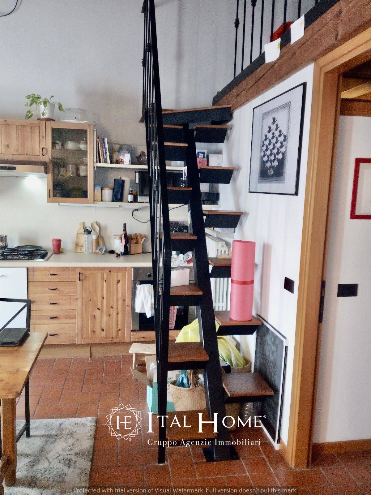 L'immobile, sito al 2° piano ed ultimo, è composto da : ingresso su zona living, cucina abitabile, una stanza soppalcata da poter adibire a studio o a camera con affaccio balconato sulla zona giorno, un disimpegno notte con un bagno con vasca/doccia ed una camera matrimoniale.