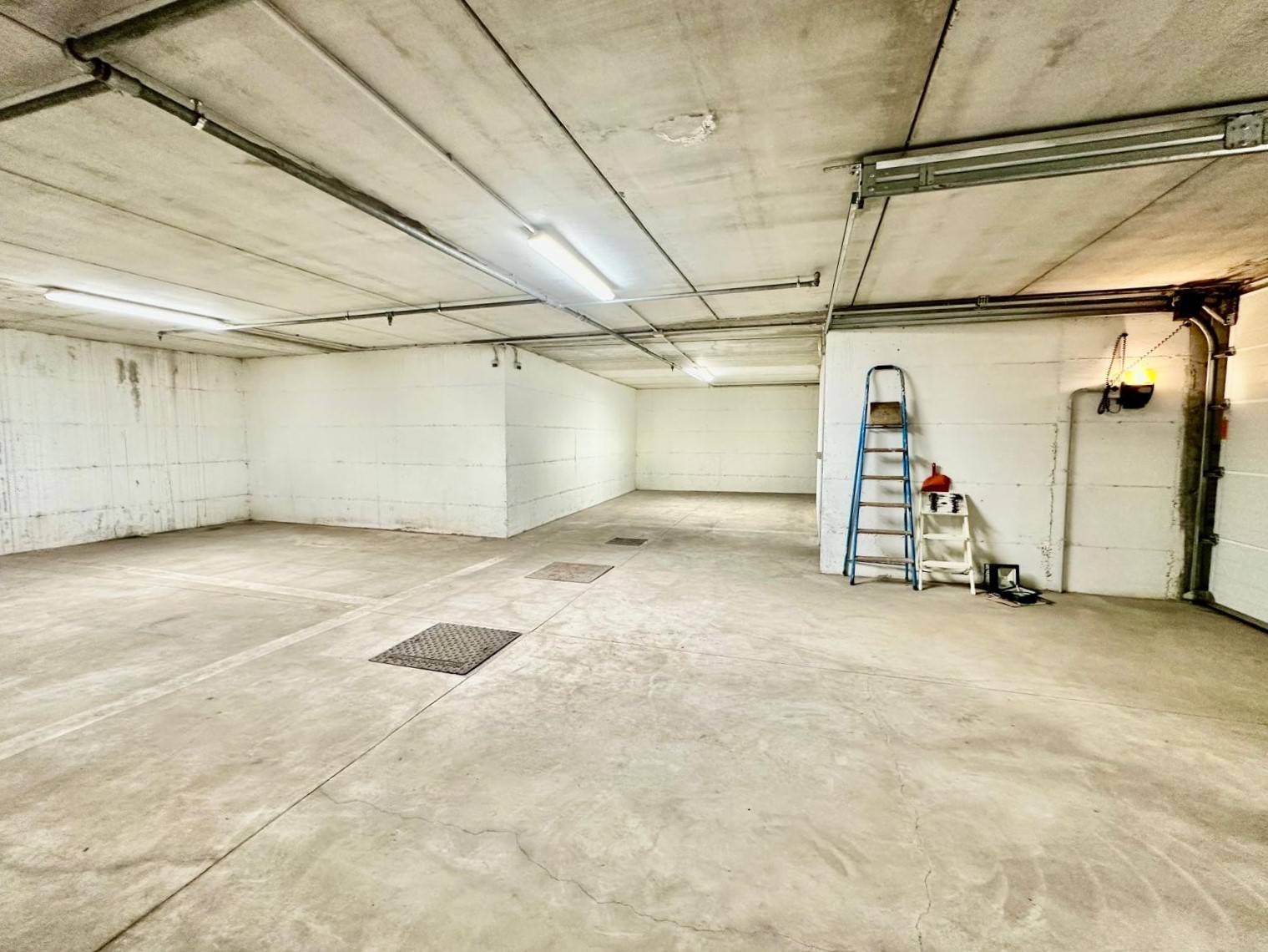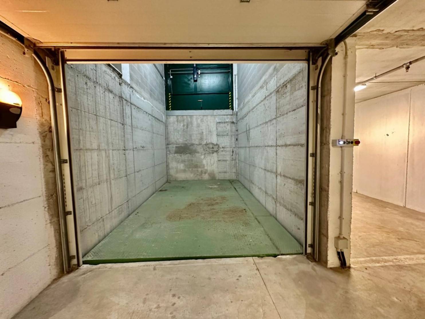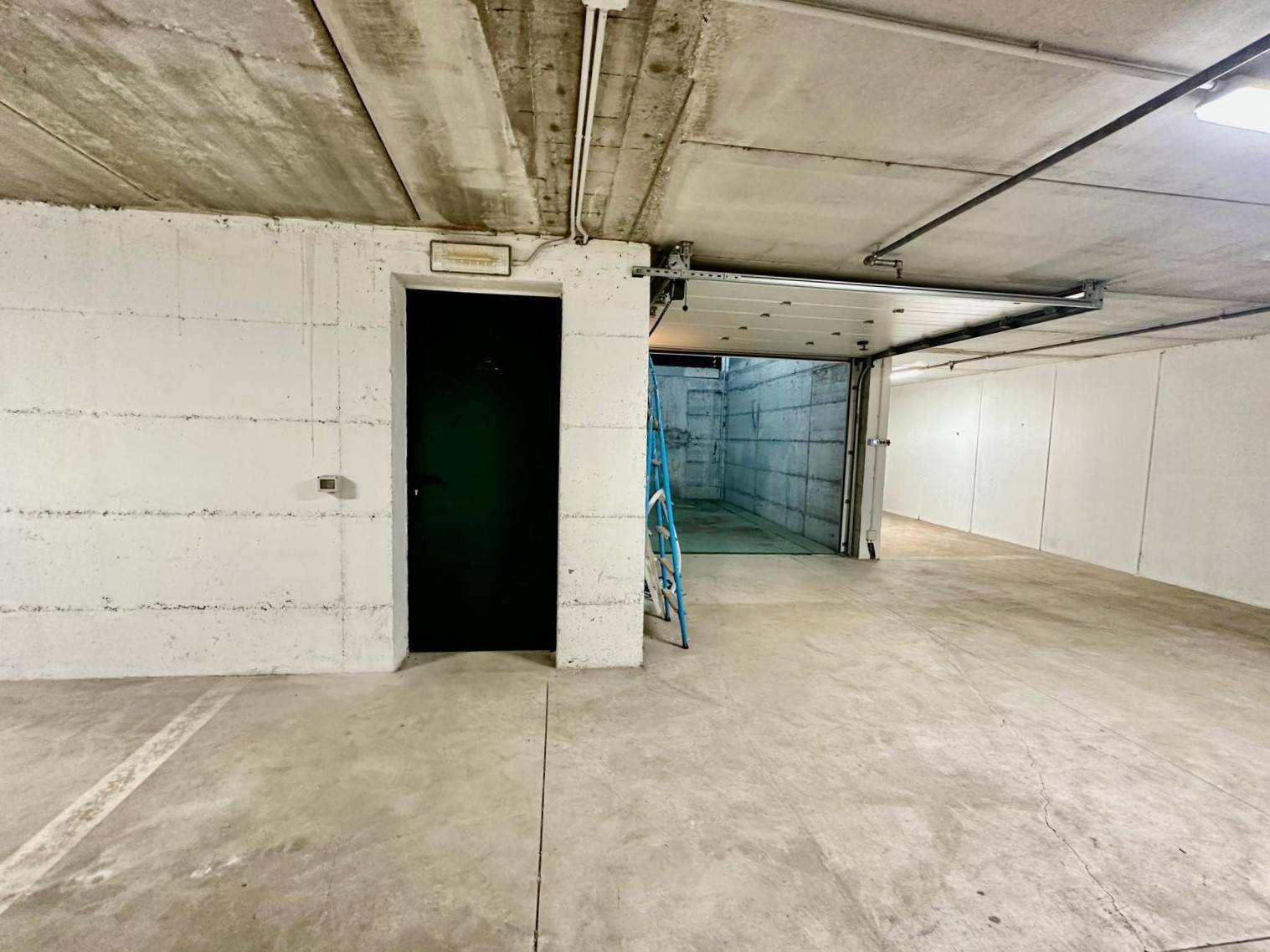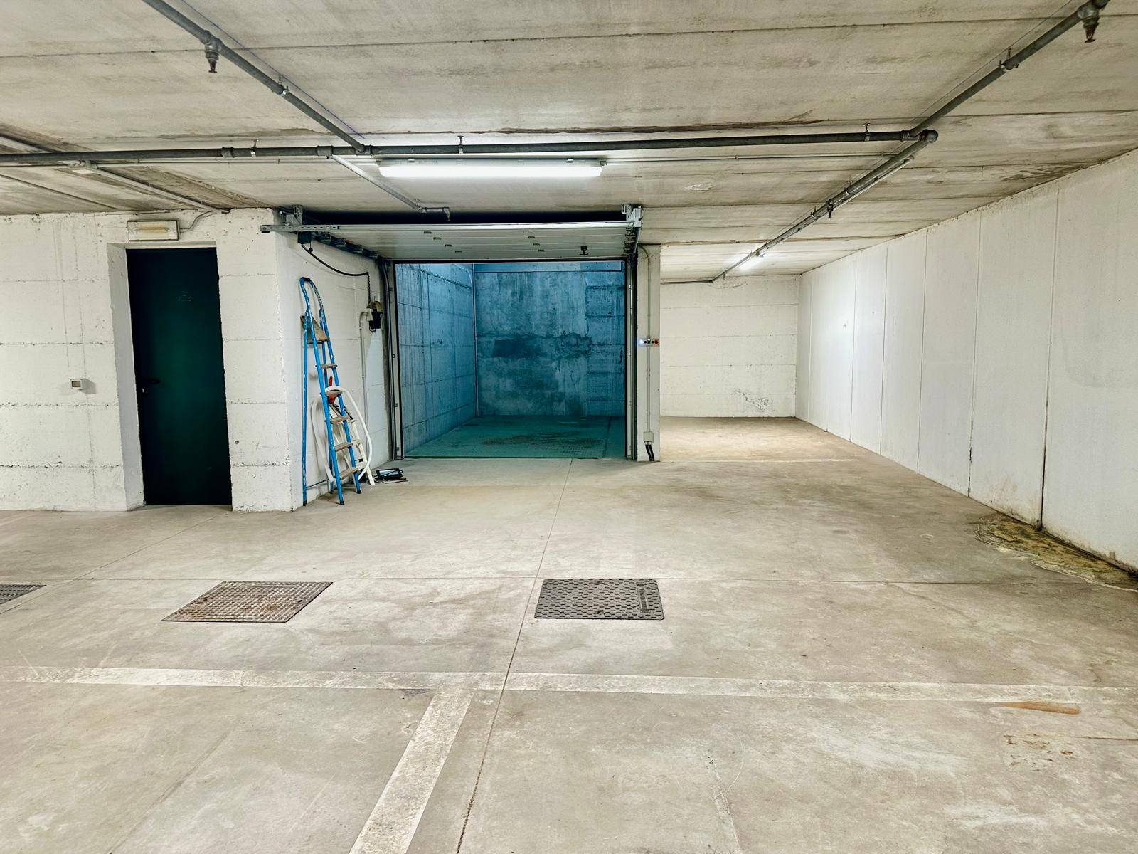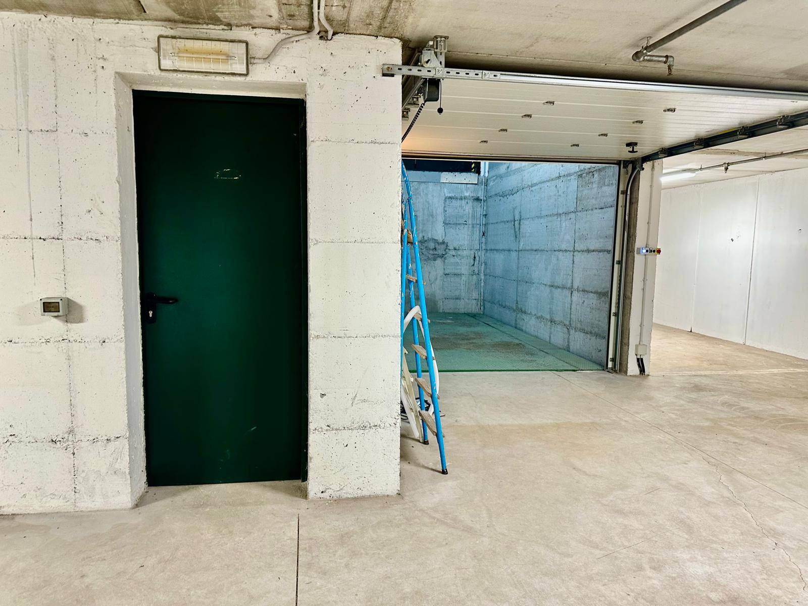Al garage/magazzino si accede dal piano terra fronte strada con basculante automatizzata. Appena varcata la soglia con l'auto la piattaforma scenderà al piano inferiore, dove troveremo internamente i posti auto su una superficie di 160 mq con altezza interna di 2,40 m.