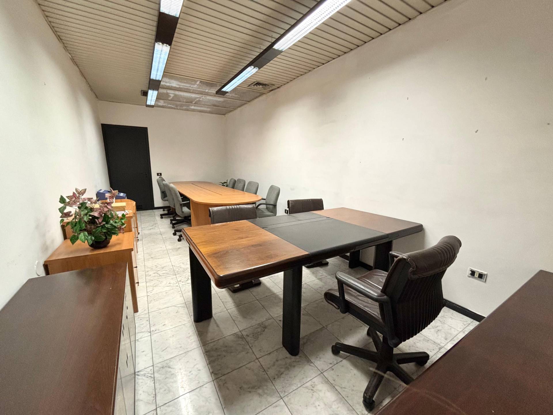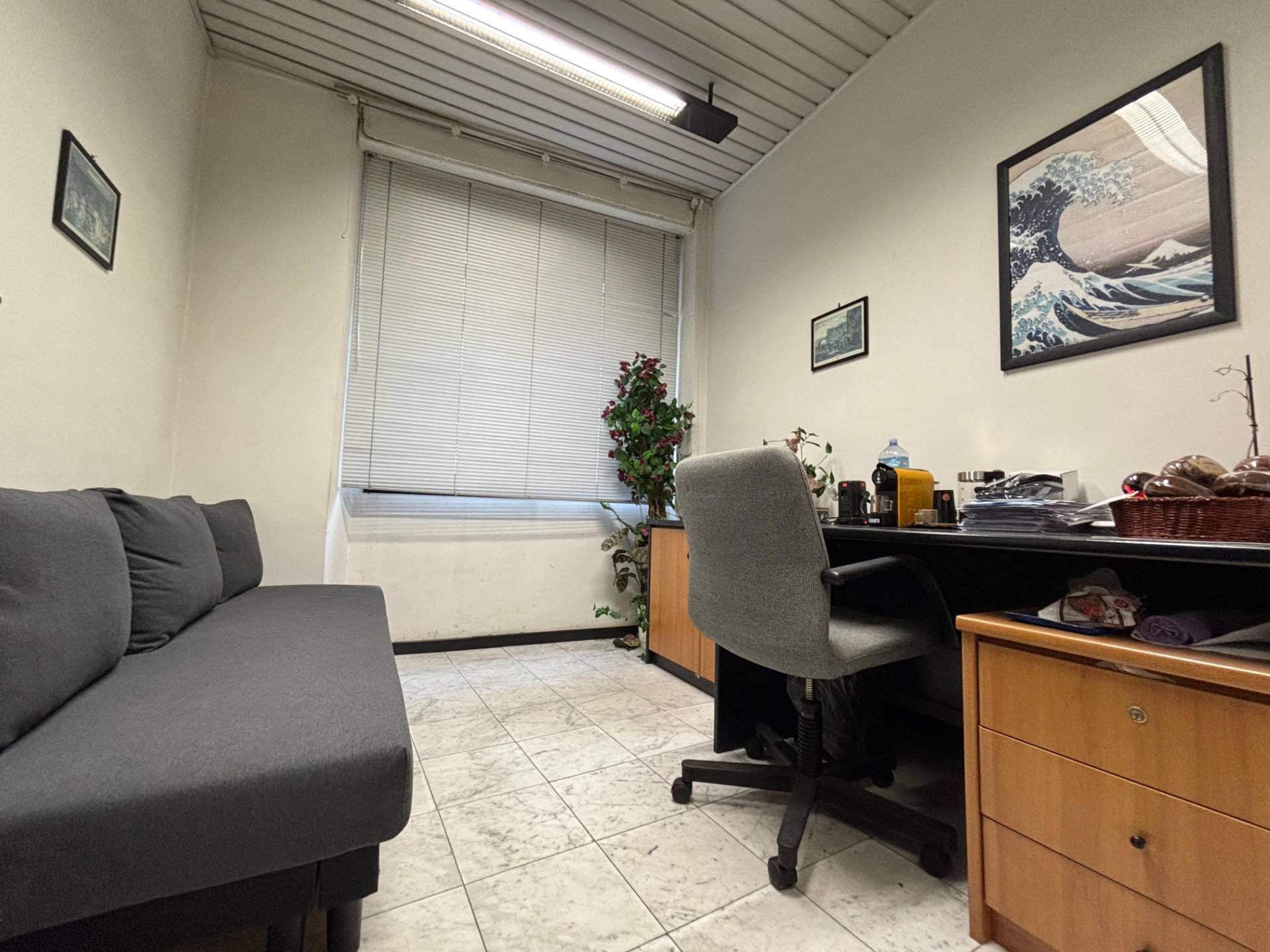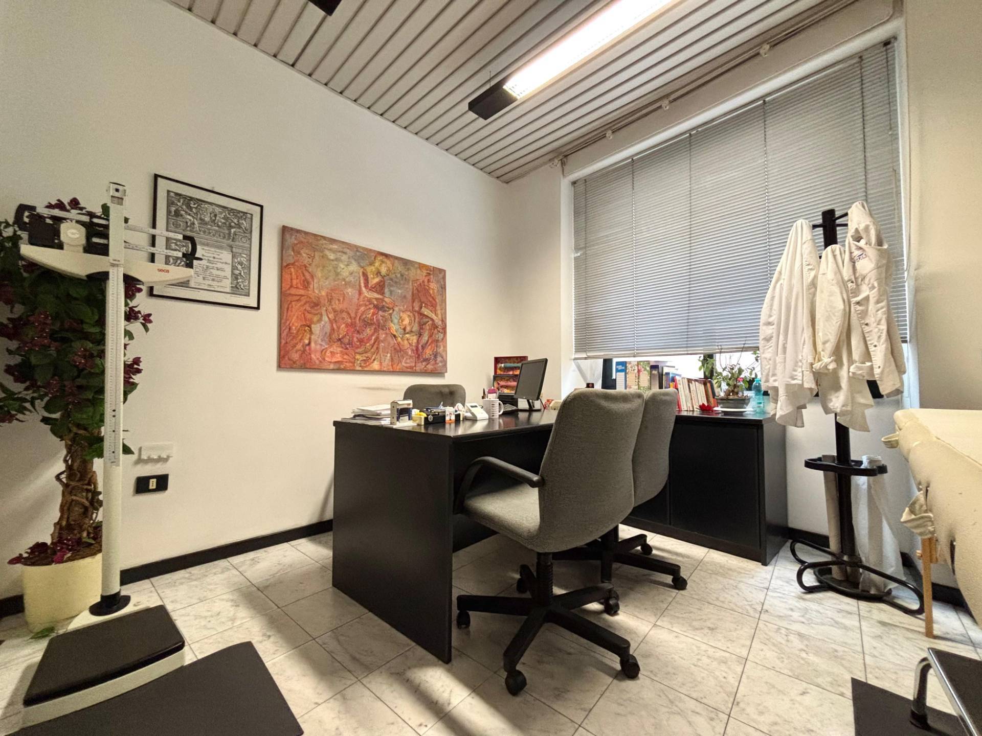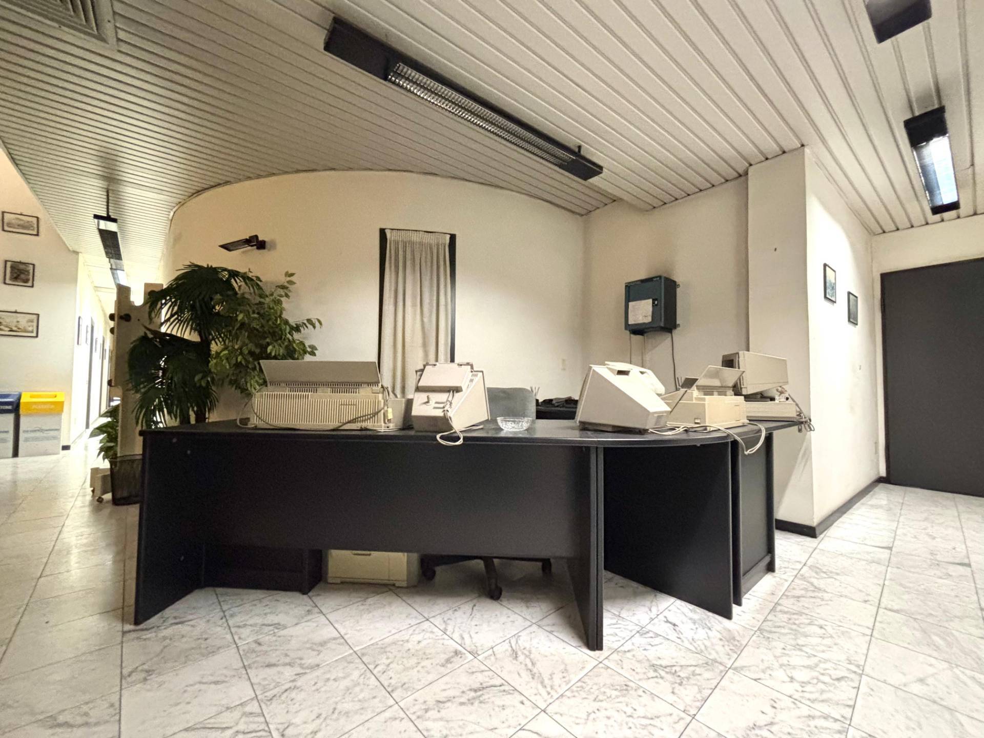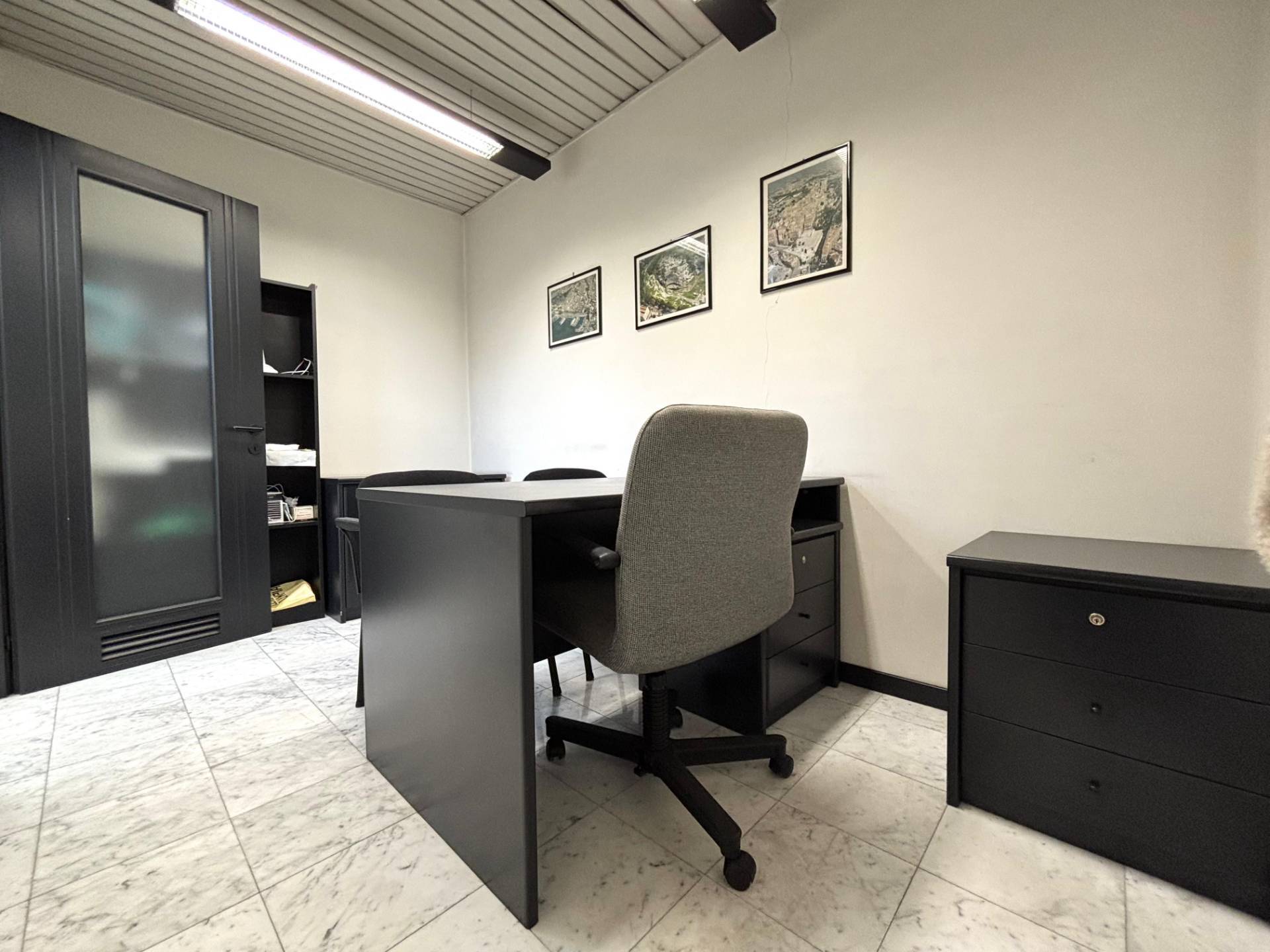 Al primo piano l'ingresso si apre su una spaziosa zona accoglienza ideale come reception o area di rappresentanza che introduce a tre camere finestrate sul lato sinistro particolarmente luminose, un lungo corridoio conduce a tre ambienti adibiti a zona deposito, un ulteriore vano spazioso e un wc.