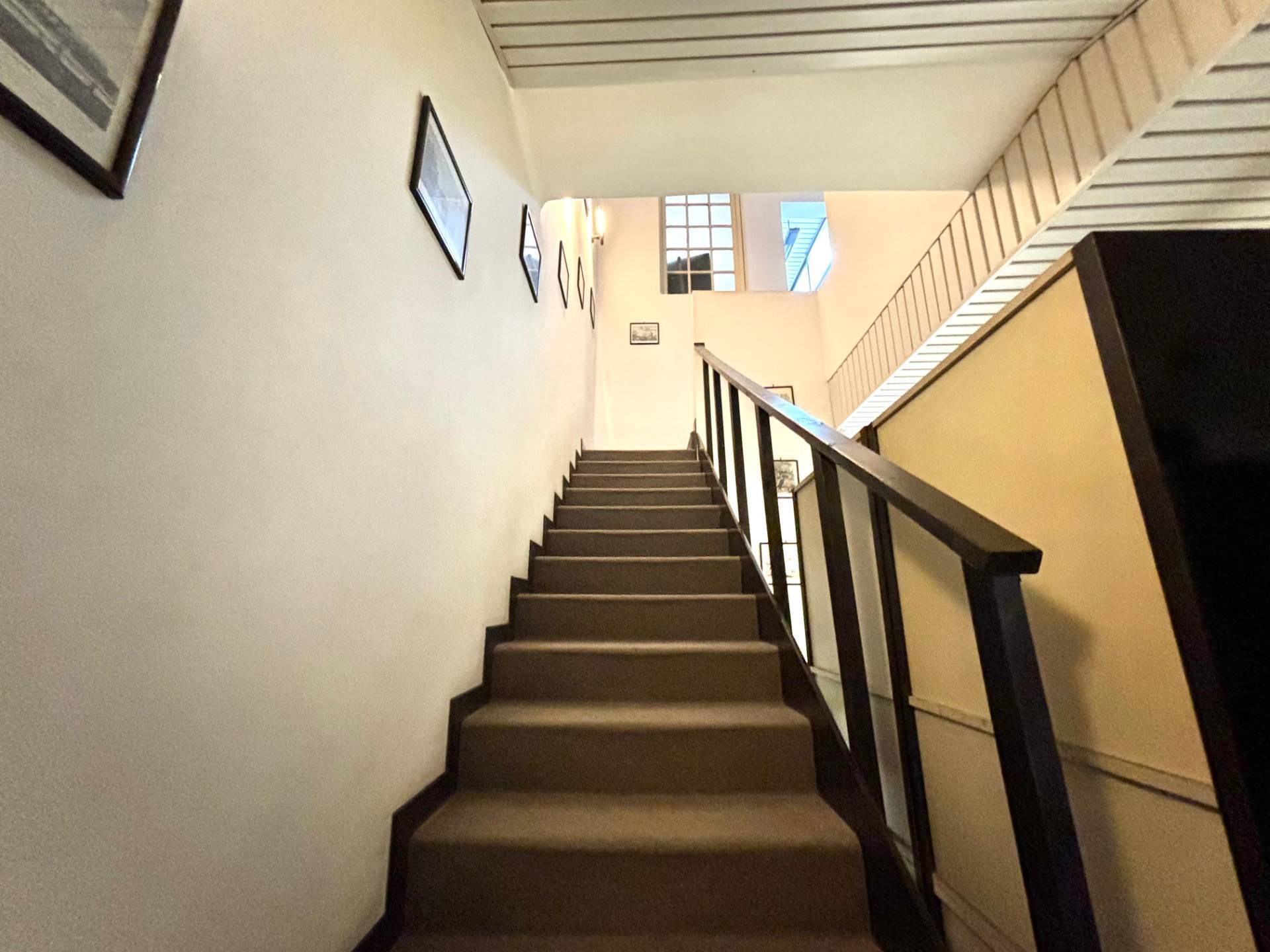 Al secondo piano un ulteriore corridoio consente l'accesso a due camere, due ambienti adibiti a zona deposito, un secondo bagno e un lucernario.