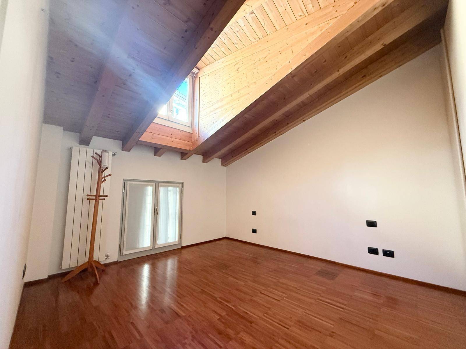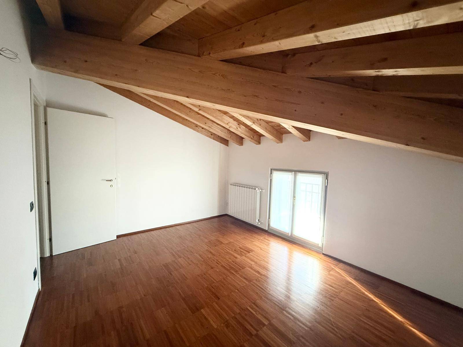 A terra troviamo parquet in ogni ambiente, esclusi i bagni pavimentati in ceramica, i soffitti mostrano delle splendide travi in legno, il riscaldamento è autonomo e l'impianto di raffrescamento è già stato installato.